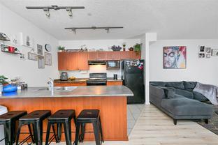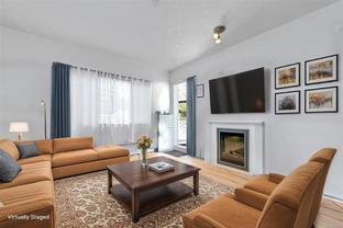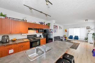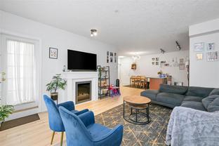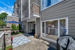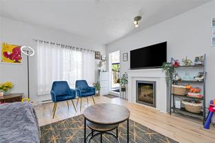 PRICE DROP AND INCENTIVE: 1 YEAR STRATA FEE COVERED!! Ground floor bright Townhouse style condo with HUGE private patio and direct access. This unique and spacious 2bed/2 full bath condo is located in the heart of Langford. This well-maintained unit comes with 936 sq/ft of living space and features an open-plan layout, living, and dining areas. The kitchen has plenty of storage, and a breakfast Island with recently upgraded laminate flooring throughout and a new washer. The condo unit boasts 9 ft. ceilings, large windows, a cozy electric fireplace, in suite laundry and an oversized 350 sq/ft patio area, perfect for hosting social bbq parties. Easy street access makes it perfect for families with dogs or young children, or to bring groceries or do room sharing/renting. This well-looked-after home with lots of natural light is located close to all amenities, shopping, schools, new university and public transport. Included is 1 covered parking and storage unit. ACT NOW to make this dream home yours.
