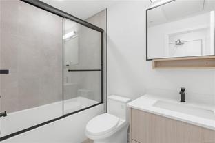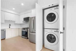 Welcome to Millstream Residences, built by renowned developer Landvision. This functional and thoughtfully designed 1 bedroom home offers 449 sqft of living space as well as a 56 sqft patio, perfect to enjoy during the warm summer months. The open living space features oversized windows that flood the space with tons of natural light, durable neutral flooring and matte black hardware and details throughout that anchor the home. The kitchen features SS LG appliances, quartz countertops and island and two-tone cabinetry with ample room for storage. The building features a large outdoor space where you can connect with your neighbours and enjoy the green spaces, seating, BBQ’s and playground. Centrally located in the heart of Langford, you are just minutes from amazing amenities and recreation, schools, hiking trails, parks and lakes.
