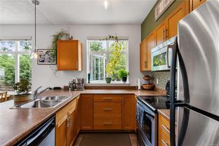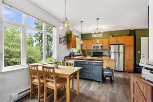 Welcome to this stunning and spacious 2-bedroom, 2-bathroom corner unit—offered by the original owner! Featuring 9’ ceilings, large windows with peaceful tree views off the kitchen, and a bright, open layout with room for a dining table. Freshly painted with new flooring and updated lighting throughout. The oversized deck is a true standout—perfect for a garden, kids’ toys, or pets to roam. The primary bedroom offers a walk-in closet, Crawford ceiling, and a private ensuite. The second bedroom has a generous closet and easy access to the updated second FULL bathroom. Other highlights include in-suite laundry, a spacious entry closet, and secure underground parking. Well-maintained and move-in ready! This property is within walking distance to Royal Roads University and just minutes from shopping, entertainment, and beautiful walking and biking trails, this condo is an excellent investment or place to call home. Don’t miss out—put this gem on your list to view today!