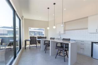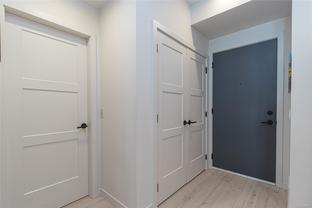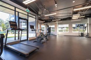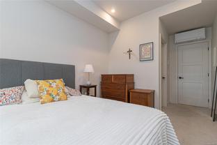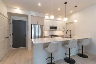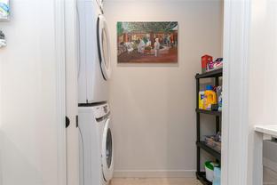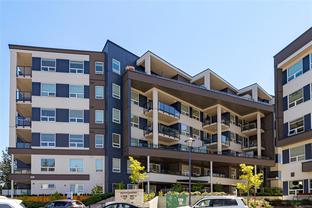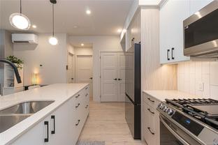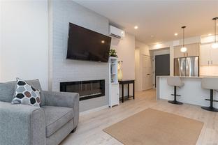 Distinguished suite with quality finish situated on quiet side of building. Efficient, low cost plus warrantee. This spacious, open-concept home boasts tall ceilings & seamless flow between living, dining & kitchen, centered around its contemporary fireplace focal wall. Enjoy year-round comfort with ductless heat pump & efficient climate control. This inspiring kitchen is a culinary dream, featuring large Quartz Island, premium SS appliances, convection oven, air-fryer, dehydrator and gas cook-top. Throughout home enjoy designer finishes including; quality cabinetry, premium tile plus durable Hayloft Oak laminate flooring. This unit offers incredible convenience with work-space nook, in-suite laundry, a dedicated pantry, a walk-in bdrm closet, storage locker and more. Strata fees cover hot water, heat & air conditioning adding value. Beyond your front door, discover array of fantastic amenities including 2 rooftop terraces and entertainment rooms with common kitchens and stunning city views, plus a 1000 sq ft fitness centre. This offer also provides secured parking, and is pet(X2) and BBQ-friendly. Explore the possibilities today.