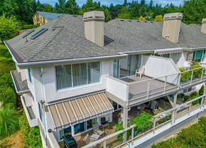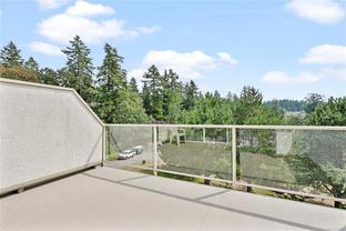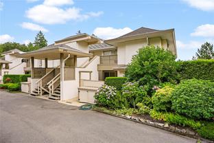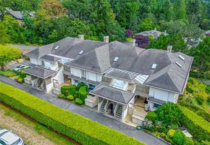 Opportunity awaits in this highly sought-after Broadmead neighbourhood! This bright and spacious top-floor end-unit townhome is truly special and includes an elevator from the underground parking. With its soaring vaulted ceilings, cozy fireplace, and expansive picture windows, you’ll enjoy sweeping views of evergreen trees and the Olympic Mountains beyond. Featuring two generous bedrooms—including a second bedroom with a convenient Murphy wall bed and a primary with a spacious ensuite. The open layout flows naturally to the large south-facing deck, the perfect spot to soak in the sun or relax with a book. This is a nature lover’s paradise—the complex even has its own private gate to the walking paths around Rithet’s Bog. Pets are welcome (no size restriction for your pup). Unit includes 2 parking stalls and a large storage locker, plus a chance to meet your neighbours in the community garden. Enjoy shops, cafés, and dining just a short stroll away. Mt Doug’s hiking trails, golf courses, and the Rec Centre with pool and fitness facilities are also close by. Come by and check it out today!