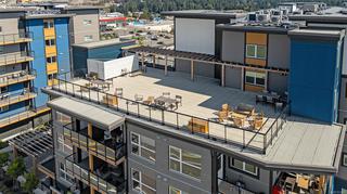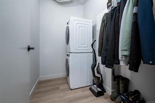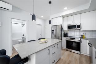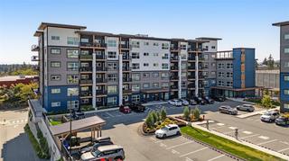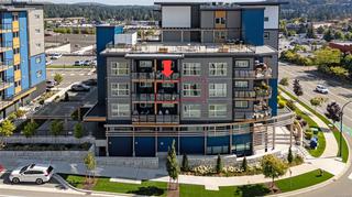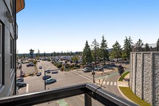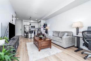 Modern and spacious 1-bed, 1-bath condo at Sky Gate. Built in 2022, this unit has been well-maintained and is in near-new condition. This third-floor unit on the outer north-west facing side of the complex has a large covered deck, 9' ceilings, an open floor plan, and a huge gallery window, providing plenty of sunlight. The kitchen features Samsung stainless steel appliances, soft-close cabinetry, and quartz countertops. Luxurious wide-plank flooring throughout, and a welcoming carpet in the bedroom. Bright 4-piece bathroom with a soaker tub. Includes an in-suite laundry room with a storage area, and a designated underground parking stall with adjacent storage space. Built green and energy efficient with triple-pane windows and a heat pump for heat and air conditioning. This pet, family and rental-friendly building is rich in amenities, including a rooftop deck, gym, dog run, community garden, recreation room, guest suites, EV charging stations, and visitor parking.