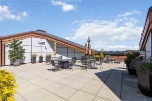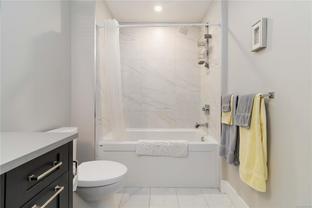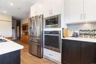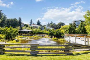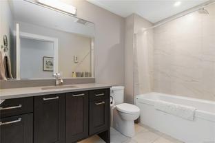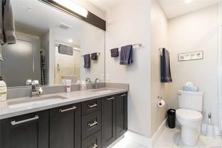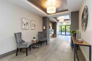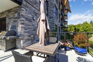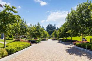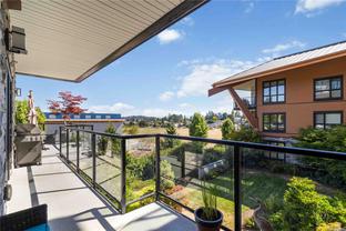 *OPEN HOUSE SUN OCT 26th 1-3pm* This spacious one owner 2 Bedroom & Den suite is located in the popular Phase 2 building (Travino Square) & includes one secure parking stall with an EV CHARGER. Bright, CORNER location featuring 9ft ceilings, laminate flooring, large kitchen with quartz countertops, gas range & stainless appliances. Gorgeous views to the south from the oversized wrap around balcony plus a gas outlet for the BBQ! Large primary with walk-through closet to a 5 pce ensuite. The second bedroom includes a built-in Murphy bed. This building also features a common roof top deck and access to an onsite fitness centre & multi-purpose area located in Travino Central. Within walking distance to Royal Oak Shopping Centre, Broadmead Village, bus exchange, Commonwealth Place & more. Travino is an award winning development which includes central heating, air conditioning and hot water in your monthly strata fee. Other common features include car and pet washing station, kayak storage & garden plots.