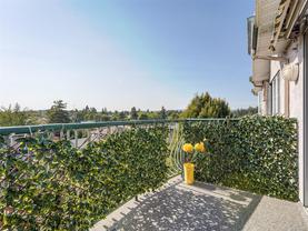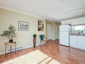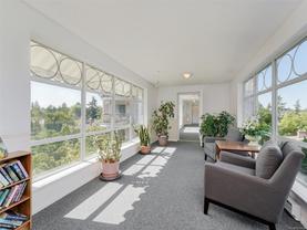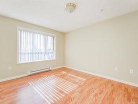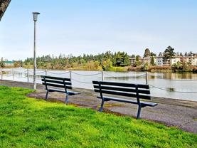 OPEN HOUSE – Sunday, Oct. 19th from 2-4 pm. Enjoy views of mountains and sunsets from this bright private TOP floor SW suite located on the quiet side of the buildings. This inviting 55+ suite has a modern open plan living area, a kitchen complete with all major appliances, a generously sized bedroom with a large window that fills the space with natural light and a spacious bathroom. The roomy balcony has an electronic retractable awning. The suite has a laundry room with hookups in place. Same floor laundry room is steps away. The buildings offer amazing shared amenities including big social room, kitchen, huge patio with BBQ perfect for functions, library, GUEST SUITE with bath for visitors, new carpets in hallways, garbage chute. A 2nd floor sky walkway joins both buildings. Pet-friendly! Walk across to Tillicum Mall for shops, Library, Rec. Centre and more. Easy access to 5 major bus routes and secure bike pathway. Unique European influenced design and beautiful landscaping.