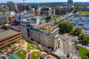 Located in the iconic Customs House on Victoria’s Inner Harbour, this studio home offers 524 sq ft of well-designed living space. The perfect Pied-à-terre, the open layout features 10’ ceilings, wide-plank hardwood floors, and a modern kitchen with Bosch appliances, quartz countertops, and sleek cabinetry. The main living area extends seamlessly to a spacious private patio, perfect for morning coffee or evening relaxation. Thoughtful details include in-suite laundry and ample storage. Residents enjoy access to premium amenities including a fully equipped gym, steam and sauna rooms, concierge service, and an elegant lobby that reflects the building’s heritage character. Steps from the Empress Hotel, BC Legislature, restaurants, shopping, and the Inner Harbour, this is a rare opportunity to enjoy a landmark building in one of Victoria’s most desirable locations.