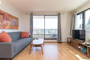 Priced Below Assessment! Modern open plan kitchen-living-dining layout for this generous sized One-Bedroom Condo, with huge private balcony accessed from both bedroom and living room, in North Park/Downtown Victoria! This well-maintained corner unit, located on the North East side of this steel & concrete building is perfect for first-time buyers or investors. There are excellent transit and bike routes to surrounding areas and schools. This flexible building allows rentals and pets and has no age restrictions. Extra amenities include a large laundry room, gym and steam room, bike racks and a meeting room with a 12th floor sundeck. The prime location offers easy access to trendy shops, delightful cafes, and local parks, making it a vibrant place to live. Please note there is a waitlist for storage and parking. This condo presents a rare opportunity in a central area and priced to sell. Bonus: hot water is included in the strata fee. Call your agent and book a showing before it's gone!