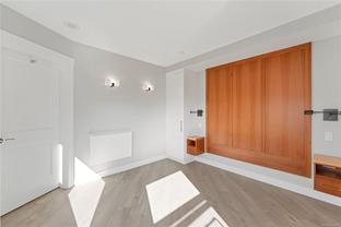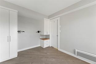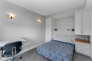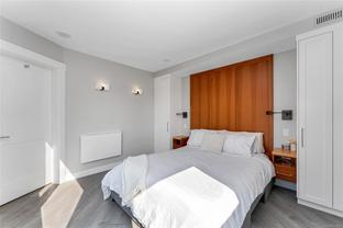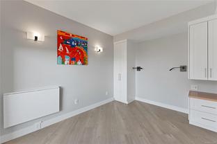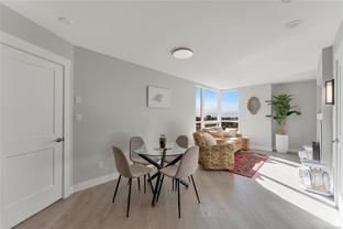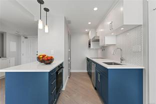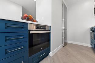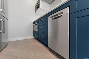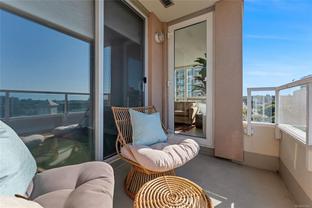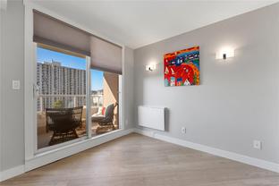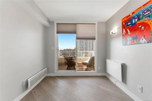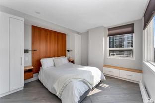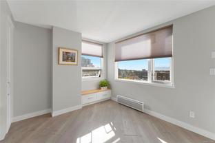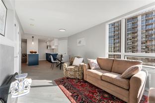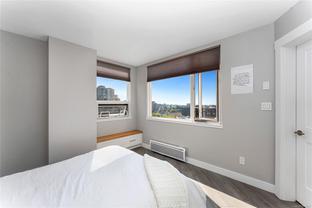 Sophisticated and stylish, this fully renovated South-facing 2-bedroom residence at 930 Yates offers a truly elevated city lifestyle. From the moment you enter, windows frame sweeping views of the ocean, Olympic Mountains, and skyline, filling the home with natural light. Every detail of the interior, curated by Villamar, has been thoughtfully considered to combine luxury, comfort, and efficiency. The kitchen is anchored by premium Miele appliances, including a built-in espresso machine, induction cooktop with pot-filler, and Liebherr refrigerator, all set against a striking herringbone backsplash. Wood cabinetry with a custom pantry, soft-close doors, and elegant built-ins elevate both style and function. A Bosch washer/dryer, a discreet built-in ironing board, and folding desktops in both bedrooms bring further convenience to daily living. The bedrooms are enhanced with custom cabinetry and integrated USB ports, maximizing space with refined efficiency. This condo is complemented by a spa-inspired bathroom featuring a walk-in shower and elegant finishes. Comfort is further elevated by an HRV system, which ensures continuous fresh air circulation and improved energy efficiency. Even practical details, such as easily accessible water shut-offs for peace of mind while travelling, have been seamlessly integrated. This residence is move-in ready, offering a rare blend of modern luxury, intelligent design, and meticulous craftsmanship in the sought-after Manhattan building. Parking is available by waitlist.