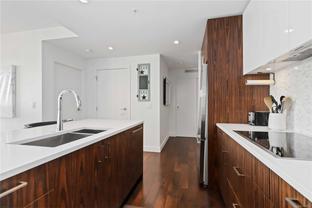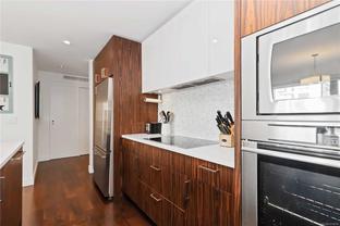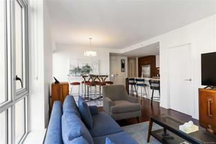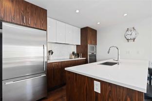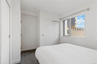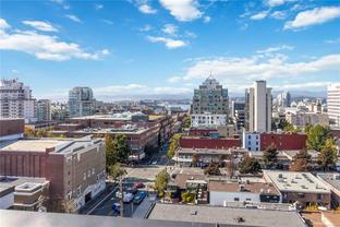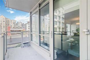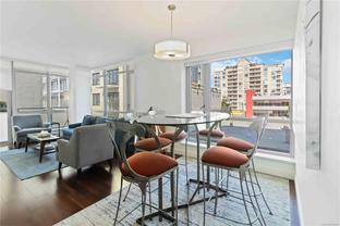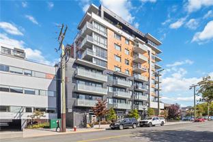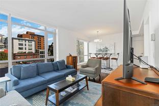 Move-in ready corner unit in a quality Chard Development building on the edge of downtown—close to everything yet tucked away from the bustle. This bright 2-bed, 1-bath home features a smart split-bedroom layout, warm wood floors, and floor-to-ceiling windows. The gourmet kitchen offers quartz counters and a large island, perfect for cooking and entertaining. The sleek bath has dual access, including from the primary suite. A welcoming foyer, in-suite laundry, and secure underground parking add ease. Building amenities include a pet wash, bike repair station, and a rooftop deck with panoramic views for summer BBQs. Walk to the Inner Harbour, Beacon Hill Park, YMCA, shops, and restaurants. Stylish, modern, and pet-friendly—urban living at its best!