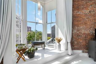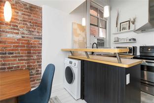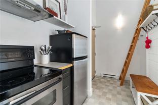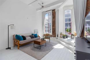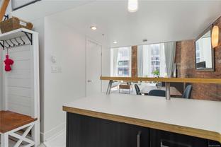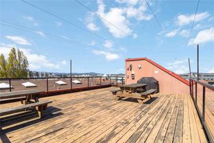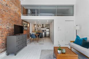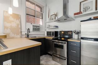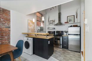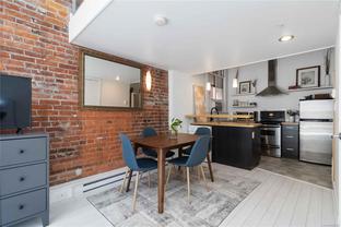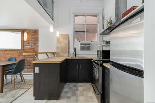 OPEN HOUSE SAT OCT 18th 2-4pm : This Stunning BRIGHT NYC Style loft is situated in the famed Oriental building in vibrant downtown Victoria. Unit 206 is a corner end unit and is among the largest in the building, offering an impressive floorpan. Unique features including an iconic heritage bay window, oversize 14ft ceilings bathed in natural light from multiple SW facing windows and exposed brick walls adding an urban chic aesthetic. The modern kitchen impresses with an open concept kitchen/living/dining area. Originally crafted in the late 1880s, this sought after 2011 conversion with in-suite laundry and live/work opportunities seamlessly blends historic charm with contemporary comforts. Enjoy building amenities like bike room, dedicated storage, charming enclosed courtyard, and a shared rooftop patio with a BBQ area and views for days - plenty of entertaining space. Pet friendly, in-suite laundry, loft bed or storage area.