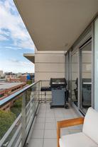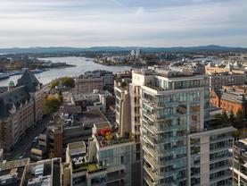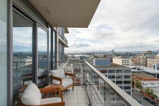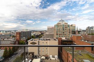Welcome to your urban retreat at The Falls, perched high on the 15th floor in the heart of downtown Victoria. This 1 bedroom + den condo showcases sweeping city views through floor-to-ceiling windows, filling the home with natural light. Step onto your private balcony and take in ocean views that stretch to the inner harbour – wow! The open-concept layout is perfect for entertaining, featuring a modern kitchen with granite countertops, European cabinetry, and stainless appliances. Relax in your spacious primary bedroom with spa-inspired ensuite or utilize the versatile den as a home office or guest space. Ideally located, The Falls offers resort-style amenities including an outdoor pool, hot tub, fitness centre, individual heat pumps, and secure underground parking. The finest restaurants, shops, and the Inner Harbour are just steps from your door. Whether as your personal home or investment, this is luxury living at its most convenient. Rentals and 2 pets welcome.
