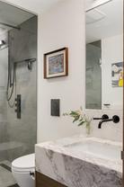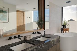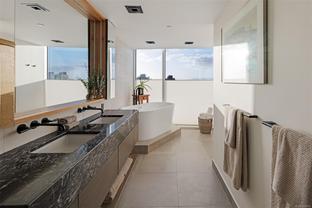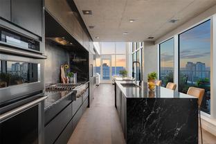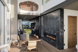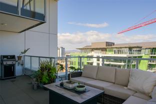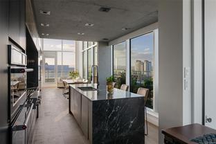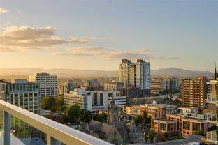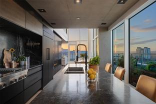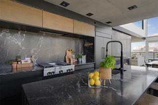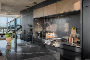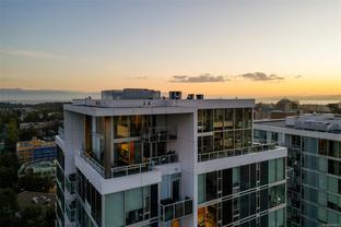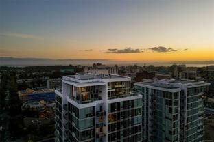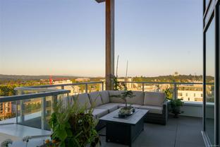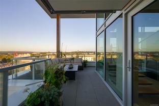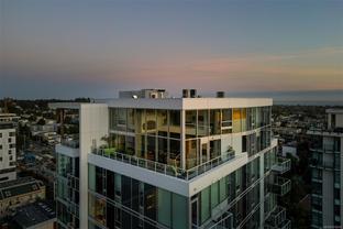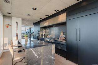 Discover the ultimate penthouse lifestyle at 989 Johnson St in downtown Victoria. This stunning steel and concrete home spans 1,800 sqft over two levels with 17.5-ft ceilings. Floor-to-ceiling windows fill the space with natural light. The kitchen flows seamlessly into the open-concept living area, perfect for hosting or unwinding. Enjoy 270-degree views of mountains, ocean, and city, with three patios to take it all in, including two covered east-facing decks with electric blinds and water/gas hookups. High-end finishes and warm wood accents bring elegance to the industrial style, complementing three bedrooms and baths. The primary bedroom suite, complete with a luxurious ensuite, sits above the family room for unparalleled views. Just steps from restaurants, spas, and downtown amenities. This pet-friendly, rentable penthouse includes two parking spots and a large private storage unit.