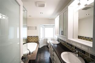 Pristine one-level living with a fully finished detached 1-bedroom suite—perfect as a mortgage helper, guest space, or private workspace. Both dwellings enjoy separate yards and private patios, with the freedom of no strata fees or restrictions. Renovated in 2013 with updated windows, siding, and roof, this home blends timeless Medicine Brick Yard character with modern upgrades. Interior highlights include hand-scraped hardwood, heated bathroom floors with hand-cut Italian tiles, Grohe fixtures, a jetted tub with custom glass shower, gas fireplace, and built-in cabinetry. Kitchen flooring updated in 2020, bedroom carpets in 2025, fresh paint inside & out, recessed lighting, plus an EV charger for modern convenience. Ideally located near parks, transit, and Hillside Mall, this versatile property offers income potential, private outdoor living, and true lifestyle ease.