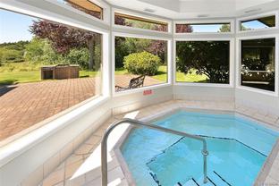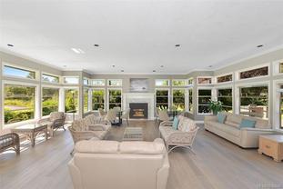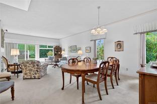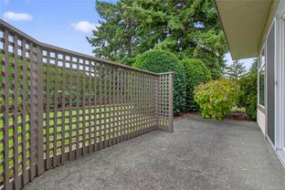 One-level rancher townhome located in the highly desirable Foxborough Hills complex in Broadmead. This upscale 55 plus community is known for its beautifully maintained gardens & outstanding amenities, including a recreation center with an indoor pool, hot tub, sauna, fitness room, library, games room, common kitchen, 2 guest suites for visiting family or friends. Residents also enjoy shared tennis/pickleball court. The complex borders the scenic trails of Rithet's Bog & is within walking distance to everyday amenities. This end-unit home features extra windows & just one shared wall, providing added natural light. Inside, you'll find two bedrooms, spacious formal living & dining area, bright kitchen that opens to a cozy family room with two-way fireplace & access to a south-facing patio surrounded by lush landscaping. The primary bedroom includes a generous 5-piece ensuite & a walk-in closet. Additional highlights include a full-size laundry room, double garage, crawlspace for extra storage & brand new windows & sliding glass doors in 2025. Come see why Foxborough Hills is the place to live.