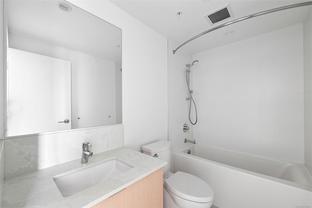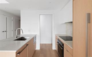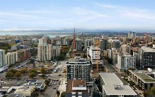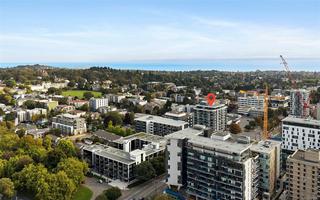 Welcome to Unit 809 at The Nest - a stunning, nearly new 2 bedroom, 2 bathroom condo that combines modern design with everyday comfort. This bright, south-facing unit captures natural light throughout the day and features an open, thoughtfully designed floor plan with sleek quartz countertops, premium Fisher & Paykel appliances, and timeless contemporary finishes. The primary suite is a serene retreat, complete with a walk-in closet and a luxurious ensuite with radiant floor heating. The second bedroom offers excellent flexibility - ideal for guests, your little one, or a dedicated home office. Step outside to your expansive balcony and take in sweeping city, ocean, and mountain views - the perfect backdrop for morning coffee or evening relaxation taking in beautiful sunsets. Built with solid concrete construction and equipped with in-unit air conditioning, The Nest provides exceptional quality and comfort. Residents also enjoy convenient amenities including a fully equipped fitness studio, dog wash station and running area, along with a children’s playground. Located steps from shopping, dining, parks, and downtown Victoria, this immaculate home is vacant and move-in ready. Enjoy the rare opportunity to own a nearly new condo with no GST - skip the wait and start living at The Nest.