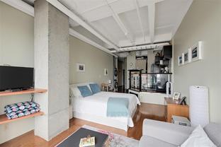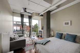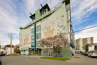 Welcome to The Mosaic, a sought-after concrete & steel building offering an exceptional blend of style & affordability in an ideal downtown location that's close to cafes, restaurants & shopping. This east-facing studio condo is flooded with beautiful morning light thanks to its floor-to-ceiling windows. The space is thoughtfully updated with new motorized blinds for easy light control, newer washer/dryer & new electric stove. Storage is maximized with a sleek, custom wardrobe solution along with an extra storage locker. This unit is an ideal opportunity for students, professionals & savvy investors thanks to its prime location & offers quick access to major bus routes. Enjoy the benefits of a low strata fee that includes your heat, hot water & gas, offering fantastic value & simplifying your monthly budget. A rare offering allowing 2 pets of any size! Stylish, affordable & incredibly convenient—this studio is a must-see! Don't miss your chance to own a piece of this vibrant community