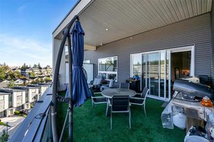 Luxury Living with Soaring Ceilings at Triple Crown Residences. Step into this nearly new, spacious 2-bedroom condo. Soaring 12–14-foot ceilings and expansive outdoor living space creates openness and style. Every detail reflects quality craftsmanship. From ductless split heat pumps in the bedrooms and living area. To the gourmet kitchen featuring quartz countertops, a gas range, and stainless steel appliances. Premium tiled kitchen backsplash, tiled shower and tub surrounds, and bathroom floors. A linear modern fireplace feature wall that adds a touch of sophistication. Rooftop patios, amenity rooms, plus a shared gym are included. Ideal for those seeking comfort, style, and flexibility in one of the West Shore’s most desirable developments.