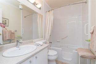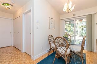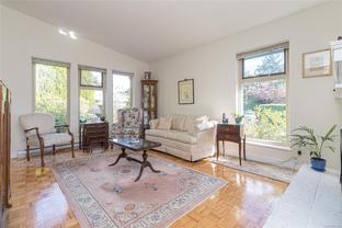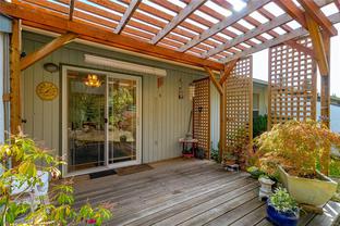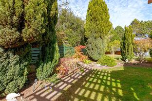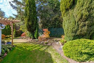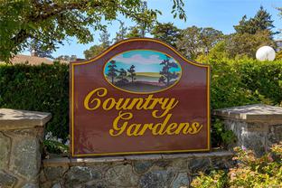 Welcome to Country Garden Estates! This private, end-unit two-bedroom, two-bath townhome offers the ease of one-level living. The thoughtfully designed floor plan features vaulted ceilings, skylight, & windows that fill the space with natural light. Enjoy a cozy fireplace in the living room & generous space perfect for entertaining. The primary bedroom includes a two-piece ensuite, while additional highlights include in-suite laundry, a utility room, attached exterior storage room, two private patios & two parking spots. Upgrades over the years include all windows, patio door, flooring, crown molding, kitchen, hot water tank, roof, pergola & more. Nestled within a well-managed, pet-friendly strata, you’ll love the nearby walking trails, convenient access to Camosun College Interurban, & short drive to everyday amenities & transit to downtown. Whether you’re looking to downsize, simplify or settle into a space that feels instantly like home, this property checks all the right boxes.