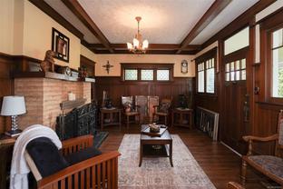 Spacious 6-bed, 2-bath home in the heart of Strawberry Vale, offering an impressive character home experience with a bright, beautifully functional layout, including 10-ft ceilings upstairs & 9-ft ceilings on the main level. The 1250 sq ft fully finished lower-level suite with kitchen, large informal & formal dining areas, and living room makes this property ideal for extended family or a great mortgage helper. Updates include a newer foundation, 200-amp service, & a lifetime metal roof for lasting stability with the visual appeal of Spanish tile. Step outside, front or back, to enjoy large decks & mature trees for privacy & relaxation. The fully fenced backyard with grape vines awaiting your green thumb offers a perfect atmosphere for entertaining. This home borders Rosedale Park, steps from Strawberry Vale School, trails, and minutes from restaurants, shopping, and commuter routes. A rare opportunity to own such a versatile family home in one of the most desirable neighbourhoods.