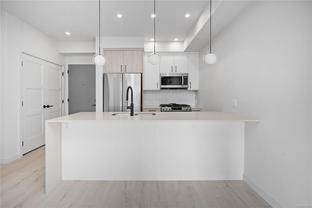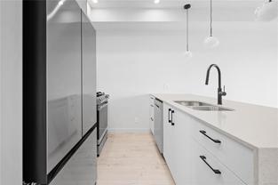 Step into this fantastic 1-bed, 1-bath condo in Triple Crown Residence III, built in 2023. Lots of modern features, including a ductless heat pump, open floor plan, chef’s dream kitchen with stainless steel appliances, quartz countertops, eat-up bar, gas range, and ample cupboard and counter space. Beautiful touches throughout, including premium subway tiles in the bathroom, laminate wood floors and a very modern fireplace feature wall. A lovely, large deck with BBQ hook-up, great for entertaining! This fabulous condo features secure underground parking, storage, a shared rooftop patio with stunning views, bike storage, and a 1,000-square-foot ground-level gym. Excellent location with easy access to Costco, Millstream Mall, and major routes. It's all here, view your dream home!