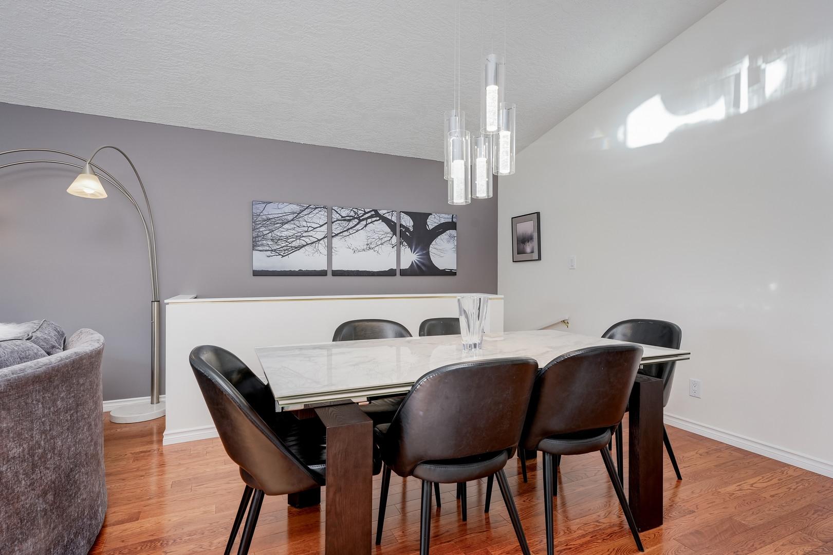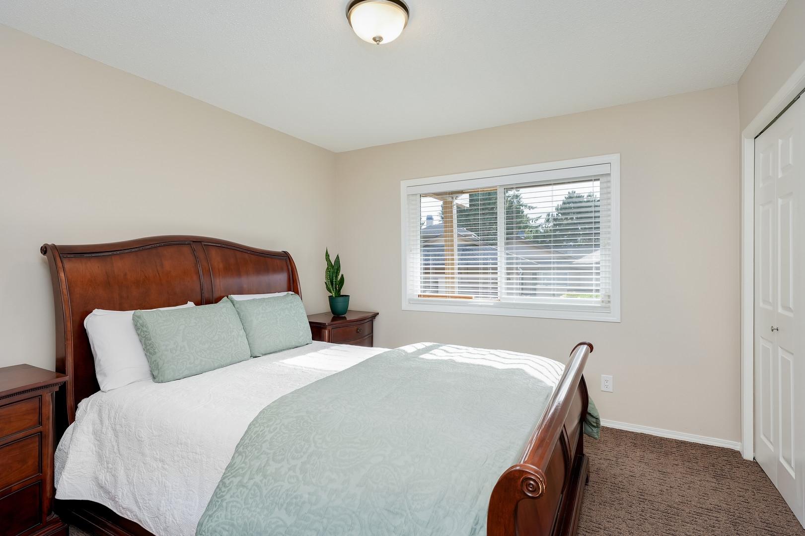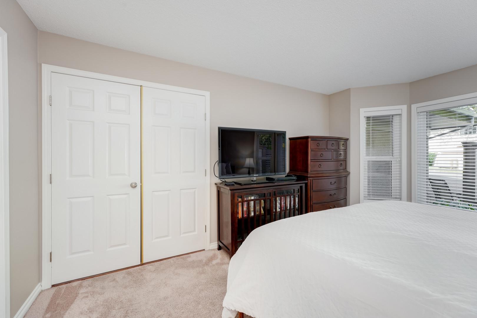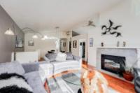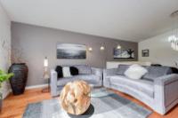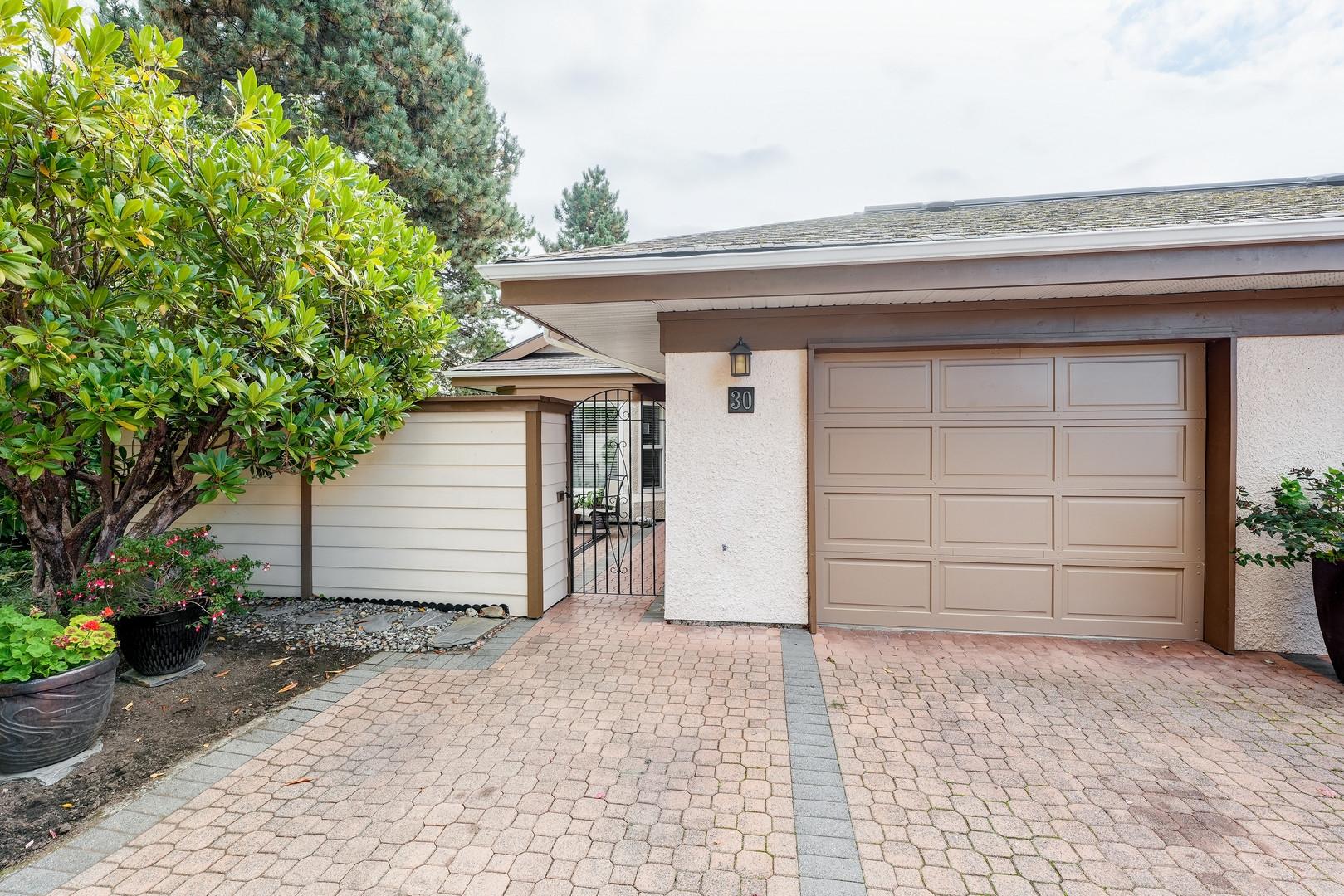 Tucked away in a peaceful setting of mature trees, this beautifully updated end-unit townhouse combines refined style with modern comfort. Extensive upgrades throughout include gourmet kitchen/family room with sleek quartz countertops, a generous island, and abundant storage. The adjoining laundry room offers additional pantry space. Expansive windows fill the home with natural light, vaulted ceilings in the main living area to create a bright, welcoming atmosphere. The lower level features two spacious bedrooms and a brand-new bathroom, along with a large storage area for added convenience. Outdoors, a private west-facing courtyard to enjoy the evening sun. Ample parking, including guest parking right by the unit, adds to the ease of living. Residents enjoy access to a well-appointed clubhouse with an indoor swimming pool and recreation center. Located moments from Broadmead Shopping Centre, parks, and walking trails. Immaculate condition—move-in ready and sure to impress.