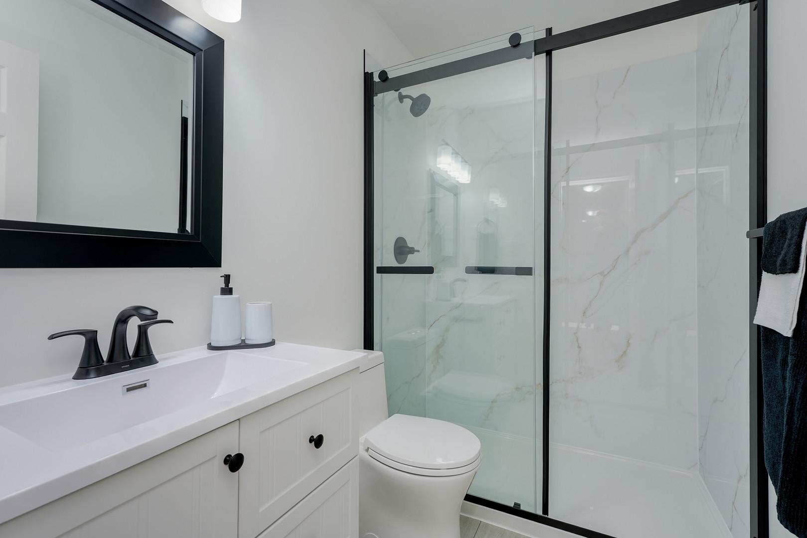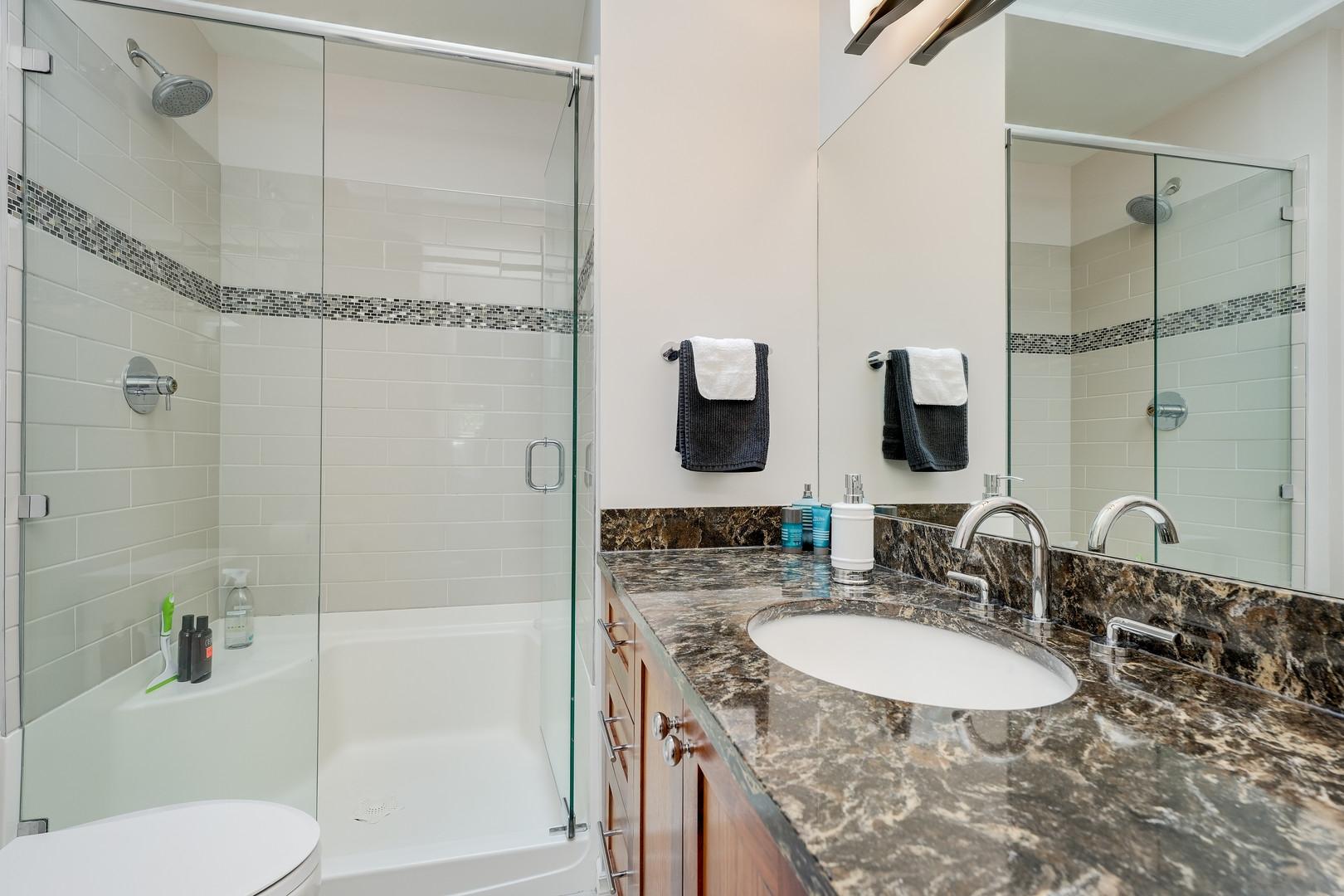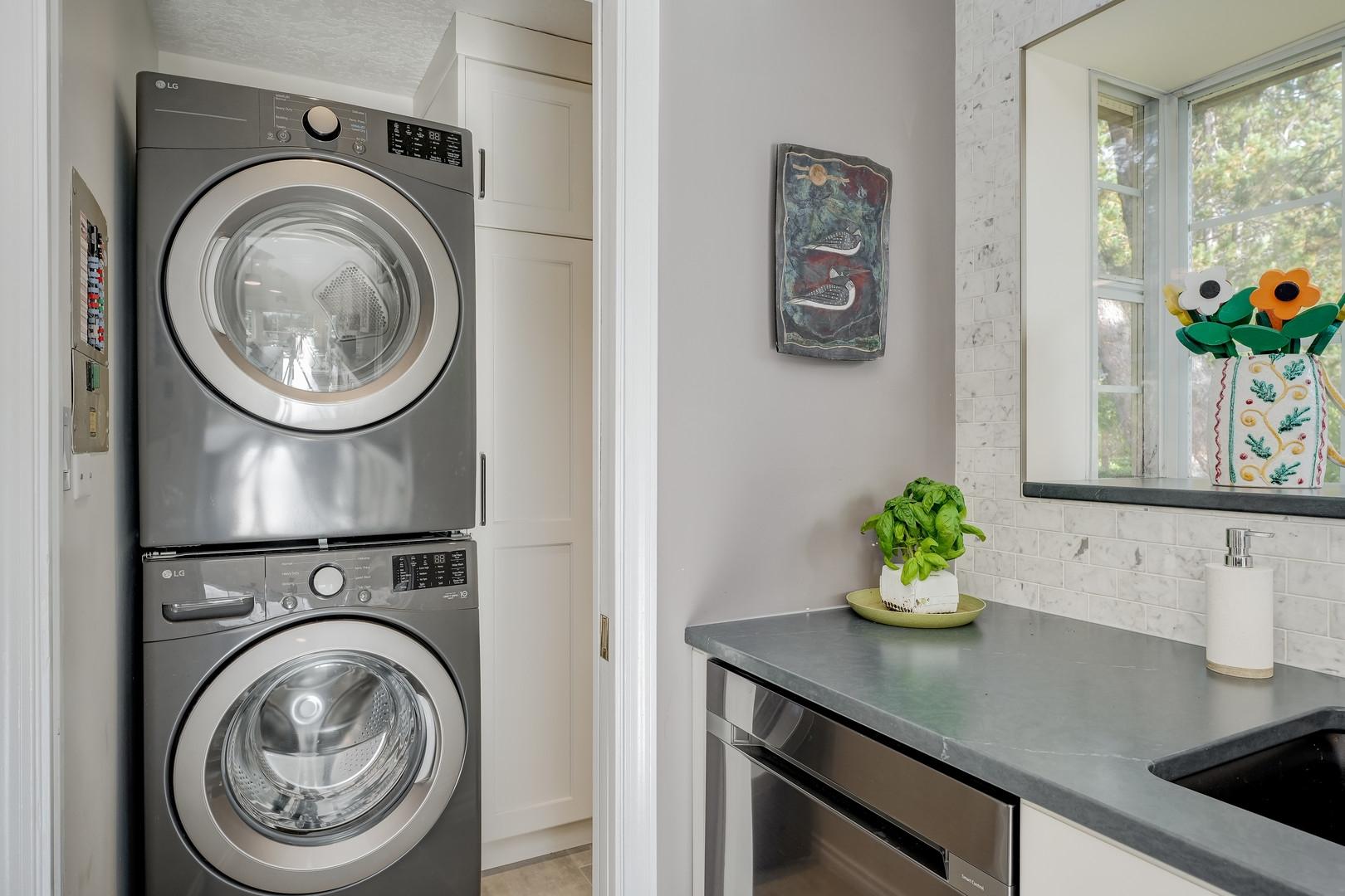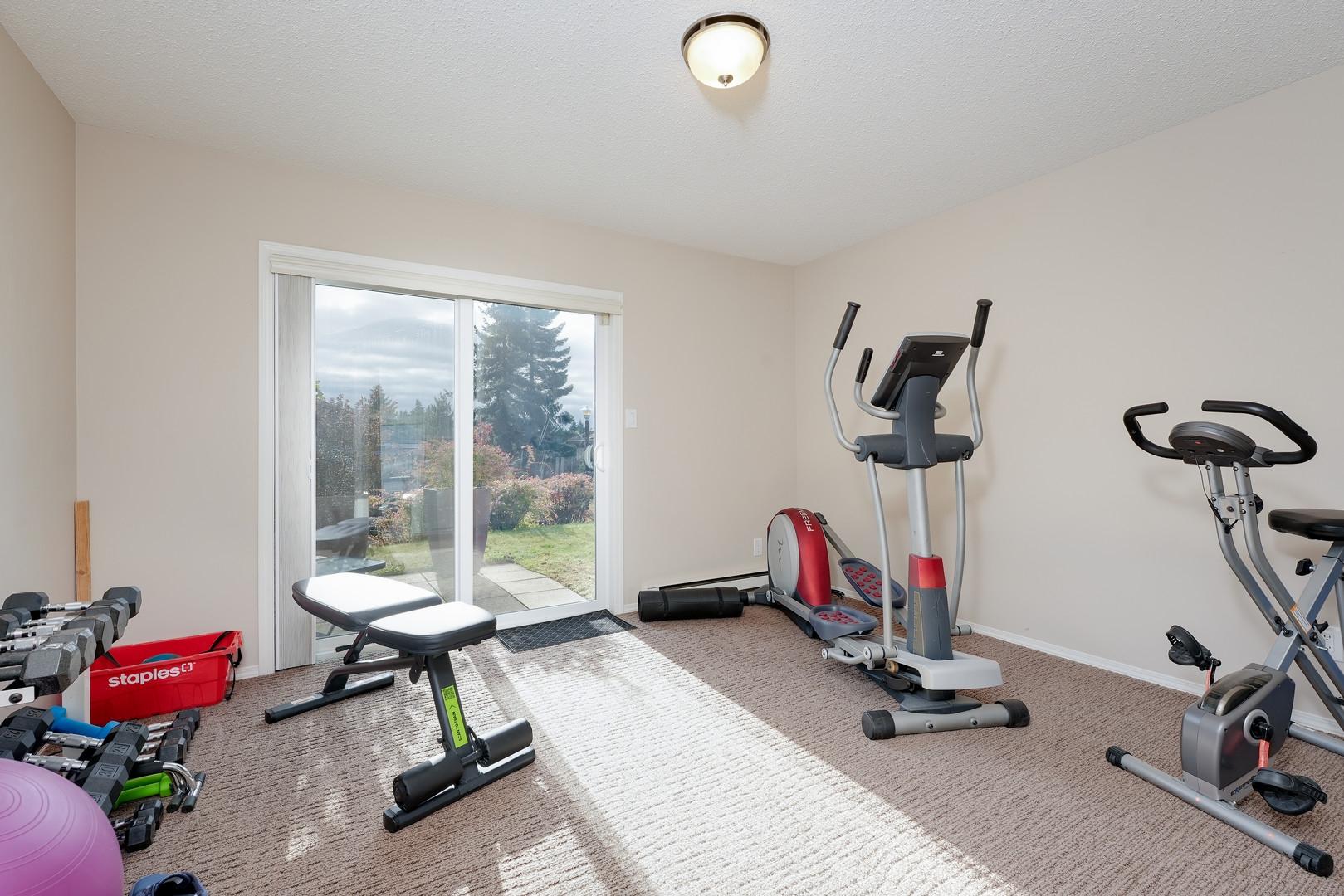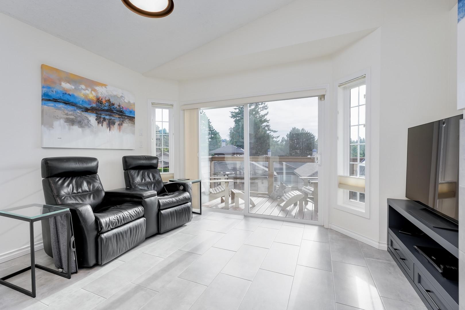 Tucked away in a peaceful setting of mature trees, this beautifully updated end-unit townhouse combines refined style with modern comfort. Extensive upgrades throughout include gourmet kitchen/family room with sleek quartz countertops, a generous island, and abundant storage. The adjoining laundry room offers additional pantry space. Expansive windows fill the home with natural light, vaulted ceilings in the main living area to create a bright, welcoming atmosphere. The lower level features two spacious bedrooms and a brand-new bathroom, along with a large storage area for added convenience. Outdoors, a private west-facing courtyard to enjoy the evening sun. Ample parking, including guest parking right by the unit, adds to the ease of living. Residents enjoy access to a well-appointed clubhouse with an indoor swimming pool and recreation center. Located moments from Broadmead Shopping Centre, parks, and walking trails. Immaculate condition—move-in ready and sure to impress.