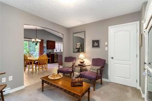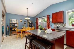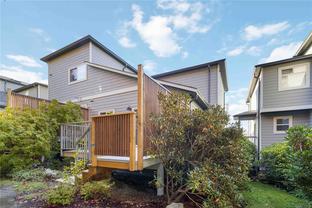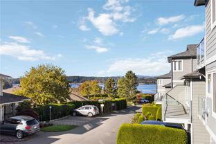 Welcome to Admirals Landing at Thetis Cove. A lovingly maintained and sunny south-facing 3-Bedroom, 3-Bathroom townhome offering 1,800+ sq.ft. of comfortable living space with ocean and mountain views. The well-managed strata has completed major exterior updates including new roofs, decks, gutters, and exterior paint. The main floor features bright open-concept living and dining areas, a spacious kitchen with island and eating nook, plus a cozy family/den space. Upstairs, enjoy a private primary suite with ensuite and large deck overlooking the mountains and ocean. The lower level includes two additional bedrooms, full bath, and laundry. Set among the trees with three deck areas to relax and enjoy the views, plus a double-car garage. Ideally located—walk to Admirals Walk shops and cafés, golf nearby at Gorge Vale, explore local trails to the ocean and Thetis Cove, and just minutes to downtown Victoria!