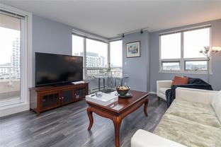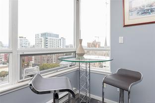 Asking $125k LOWER than BC ASSESSMENT! This 800 sqft One BED+DEN Corner Unit has ALL the vibrant Downtown life you need to offer. Experience great views of Victoria's city, mountain and ocean from your 10th floor balcony in this west facing Manhattan Suite. The generous layout features a massive bedroom and a decent size Den that can be used as a second bedroom/office. Open-concept living room, kitchen and on-site laundry completes the bright unit with coziness and convenience. This steel & concrete high rise was built by BOSA and well-managed with affordable low strata fee, hot water included, pet friendly, and caretaker onsite. Besides, gym, guest rooms, meeting room and storage is also available. Underground secure parking within the building is wait-listed or can be rented. Being on Yates means having urban life in handy. Welcome to this EVERYTHING home.