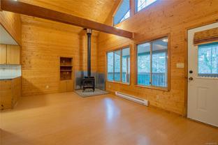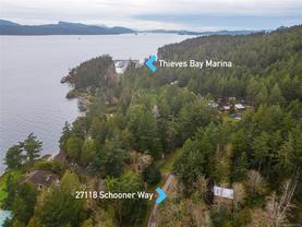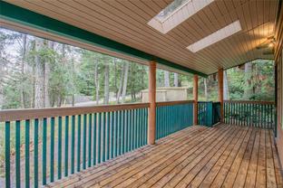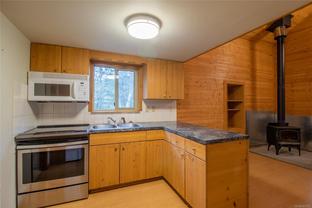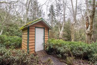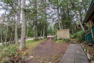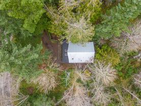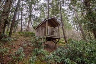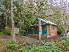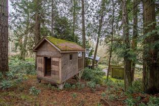 Sunny South Facing Cottage in the Woods! This charming retreat offers effortless living on a level, low-maintenance lot. The property sits in a prime locale, just across from upscale waterfront homes & a short stroll to inviting ocean access points, making coastal life both convenient & picturesque. Inside, the 720 sqft, 1BR, 1BA main level feels bright & open with vaulted ceilings. A freestanding wood stove delivers cozy warmth on chilly evenings while adding rustic ambiance. The upstairs loft spans a generous 155 sqft, providing a flexible space for a home office, studio, or houseguests. Outdoor living shines with a welcoming firepit embraced by privacy fencing, plus a whimsical tree house that kids will adore. The front entry features a large covered patio with skylights. A brick walkway leads to a second private back patio. Metal roof & asphalt shingles over the covered patio are both 7 years old. One of the most affordable homes on the market today, so don't miss out on this one!