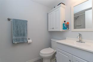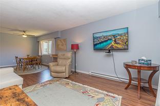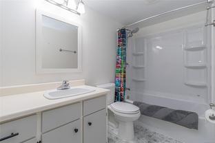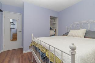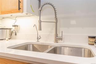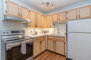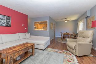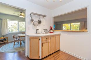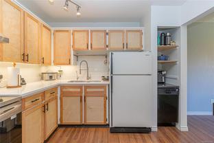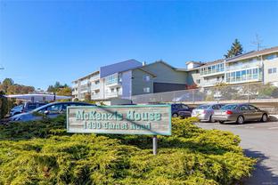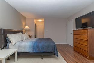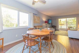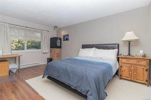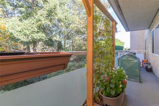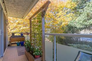 This spacious 2 bedroom, 2 bathroom condo is located in the University district of Victoria, just steps to all amenities including shopping, restaurants, library, and an easy bus/bike trip to UVic, or downtown. This sizable corner unit (measured at 1085 sq ft) is nicely situated on the 3rd floor with a treed outlook and windows on both the west and north sides of the condo. The vinyl windows in this unit were upgraded with double laminated glass for increased sound dampening. Other upgrades include laminate flooring, kitchen cabinet door replacement with new hinges, pull out shelving, gorgeous quartz counters with stainless undermount sink & faucet, live edge bar top,updated ensuite bathroom, new lighting including ceiling fan & more! Laundry is conveniently located on each floor & the building offers a workshop, recreation room, separate storage, bike storage & possible 2nd parking stall for $20/mo. Well managed with a large contingency fund, this building will appeal to all buyers!