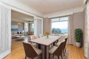 Imagine living right across the OCEANFRONT on Dallas Road, steps to Mile Zero and Beacon Hill Park. The breakwater and beach access is literally across the street. This 1938 character home with four bedrooms and three bathrooms offers panoramic OCEAN VIEWS all the way across to the Olympic Mountains. The original OAK HARDWOOD floors with walnut inlay adorn the living room and formal dining room. The wood fireplace centers the living room in this art deco home. The full basement with walk out access and GARAGE is ready for your personal touches. A separate one bedroom suite is self contained on the upper level and has its own private entrance on the back. Natural gas is connected for the hot water tank and the furnace is low maintenance electric. Perfect for the investor and/or homeowner, the location & Duplex Zoning of this property is arguably some of the best offered in Victoria. Please see both the YouTube video & 3D Matterport Tours.