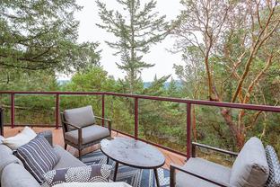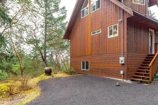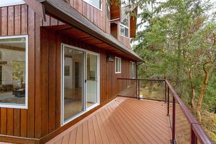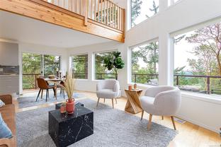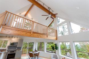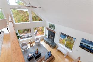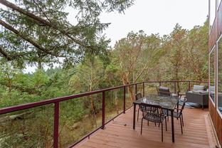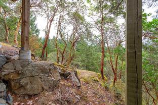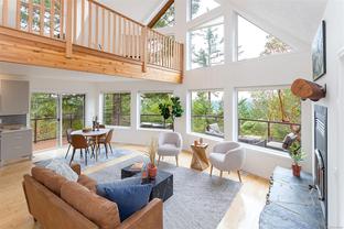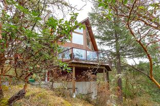 This bright and inviting 2005 custom cedar home was thoughtfully built to preserve nearly 4 acres of pristine natural woodland—a true hidden gem in the Eastern Highlands, featuring a NEW heat pump, surrounded by majestic arbutus and Douglas fir, yet only minutes from amenities. To protect the native flora and fauna, the owners commissioned a dedicated Landscape Restoration Plan, ensuring the land remains in harmony with its natural setting. Perched on a gentle rise and designed with an expansive wrap-around, south-facing deck, and vibrant sunsets. Inside, floor-to-ceiling windows flood the principal rooms with light while showcasing the vistas beyond. The open-concept layout features gleaming maple hardwood, soaring vaulted ceilings with striking exposed beams, and a stunning river-rock fireplace with an energy-efficient wood-burning insert. A rare blend of modern comfort and natural beauty, this home offers peace, privacy, and the essence of a true private retreat.. Also NEW Driveway