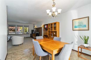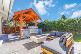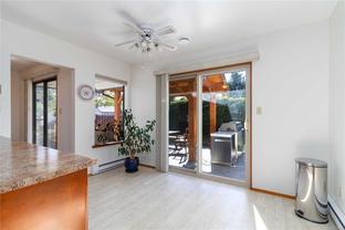 Open House Thurs 430-6. Beautiful Royal Oak rancher on a crawlspace with detached single garage, workshop, bike room and ample storage. This bright and functional 1,396 sqft. home sits on a level 7,300 sqft. lot and offers an ideal layout for downsizers or young families alike. The spacious living room with natural gas fireplace flows to a dedicated dining area and well-designed kitchen featuring a Bosch stove, Bosch dishwasher, and plenty of cabinetry. Step outside to a sunny, south-facing stamped concrete patio complete with gazebo, electrical, and natural gas hookups for BBQ or firepit. The primary bedroom includes a walk-in closet and ensuite, while two additional bedrooms and main bath complete the interior. Recent improvements include new paint, lighting, hot water tank, and a ducted heat pump for year-round comfort. The detached double garage with bike room and storage/studio adds versatility. Close to Royal Oak and Broadmead shops, Beaver/Elk Lake trails, and Commonwealth Pool.