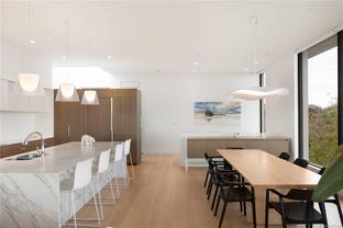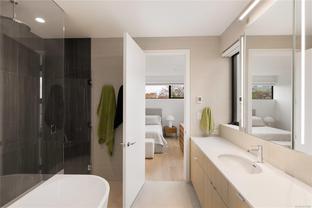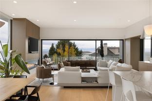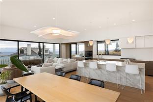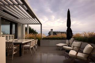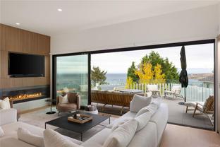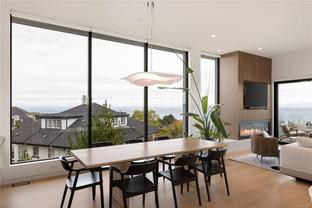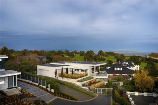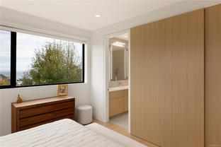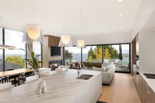 Completed in 2022, this architectural masterpiece in South Oak Bay offers over 3,200 sq. ft. of refined modern living with breathtaking ocean views. Designed to complement its natural surroundings, the home showcases soaring ceilings, walls of glass, and seamless indoor-outdoor flow to multiple terraces. The main level features open-concept living and dining anchored by a sleek linear fireplace, a chef’s kitchen with waterfall island, and a tranquil primary suite with spa-inspired ensuite. The lower level continues the thoughtful design with two additional bedrooms, a gym, office, and walkout access to the landscaped garden patio. Radiant in-floor heating, an EV-ready garage, and low-maintenance landscaping complete this exceptional contemporary residence. All steps from the oceanfront, Victoria Golf Club, and the charming village of Oak Bay.