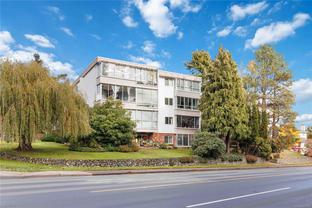 Virtual Open House, HD Photos, Video & Floorplans Online! Top-floor SE-facing corner unit—bright, freshly painted, with brand new carpet and upgraded windows. Offering 1,100+ sqft of generous living space, including a spacious living/dining area and an enclosed balcony with lovely views of Gorge Park and glimpses of the waterway. This 55+ building is incredibly well-managed, with a strong, friendly community. Enjoy monthly gatherings, a shared lounge, storage, laundry, and covered parking. Two cats or birds allowed (no dogs). Rentable for future plans or move-in ready today! Close to shopping, medical, parks, Uptown, Downtown, Gorge Golf Course, and Gorge Park/Waterway. Strata Plan states 1246 sqft. Floor Plan states: finished 1132sqft, deck/unfinished 100sqft total = 1232sqft. Quick possession possible!