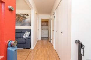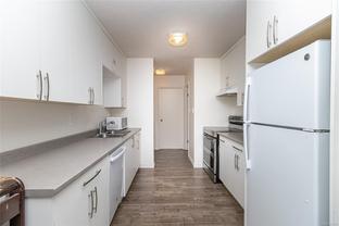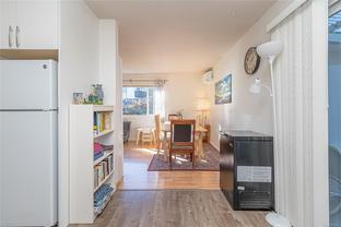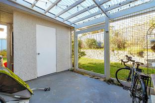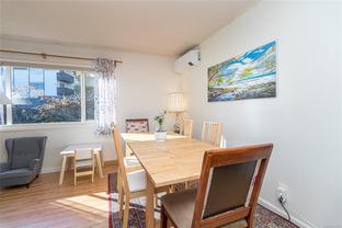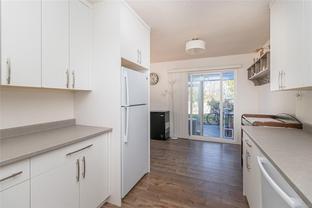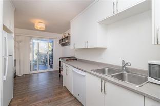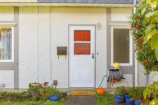 End unit 3 bed, 2 bath, townhome with a lot of sun exposure, centrally located Quadra Village & Hillside neighbourhood. Best Unit in the Complex: private, quiet corner at the back of the complex. Spacious and bright main level offers open living and dining room, kitchen, laundry room, 2pc bath, separate pantry/storage, as well as a covered, private patio and storage area. Upstairs there are 3 bed, 4PC bath. Laminate & vinyl luxury flooring, newer stove, thermal windows, installed exterior solar blinds on all windows, toilets replaced with low flow water. Heat Pump installed September 2025 for the new buyer to enjoy cooling in summer and warmer winter nights. Located within walking distance to all amenities such as cafés, restaurants, Fairways Market, Mayfair Mall, Topaz Park, Sports Field, playgrounds, swimming pool, elementary school. Perfect for a small family or first-time buyers. Don't miss it, call your real estate agent now, it won't last long!