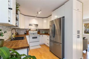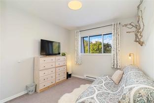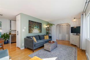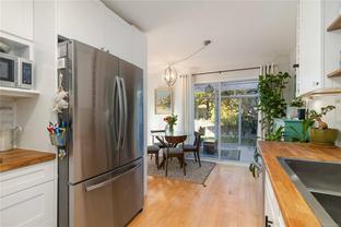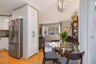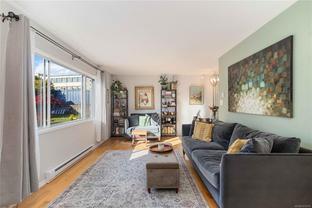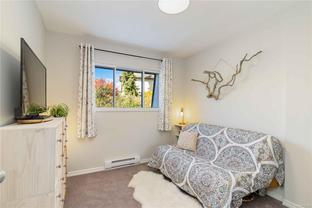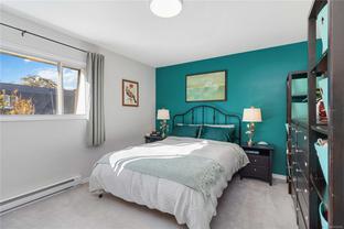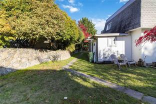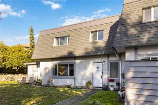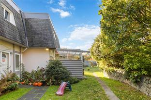 This bright, beautifully updated 3-bedroom, 2-bath townhome shines with southwest exposure, filling the home with natural light all day. Set peacefully in the back of complex, with fruit trees around, it offers incredible tranquility just a block from Quadra Village. Enjoy extensive updates throughout, including a stunning new kitchen, renovated bathrooms, refreshed laundry room, engineered hardwood floors and energy efficient thermostats to name a few! The thoughtful layout offers privacy with offset quad-style units and minimal shared walls. The community is friendly and family-oriented, with kids safely playing in the fenced complex. Surrounded by nature, you’re steps to parks like Summit and Topaz, plus Garry oak–lined sports fields at the end of the road. With tons of storage including a bonus upstairs closet-that could be used as small office, large storage closets and sunroom with a lockable shed—this bright, quiet, and move-in-ready home truly has it all!