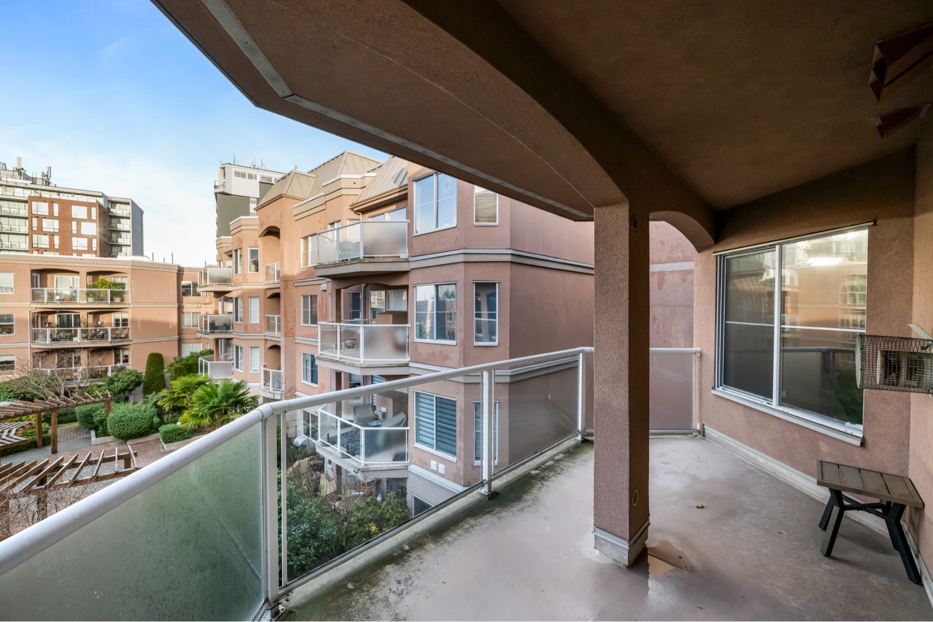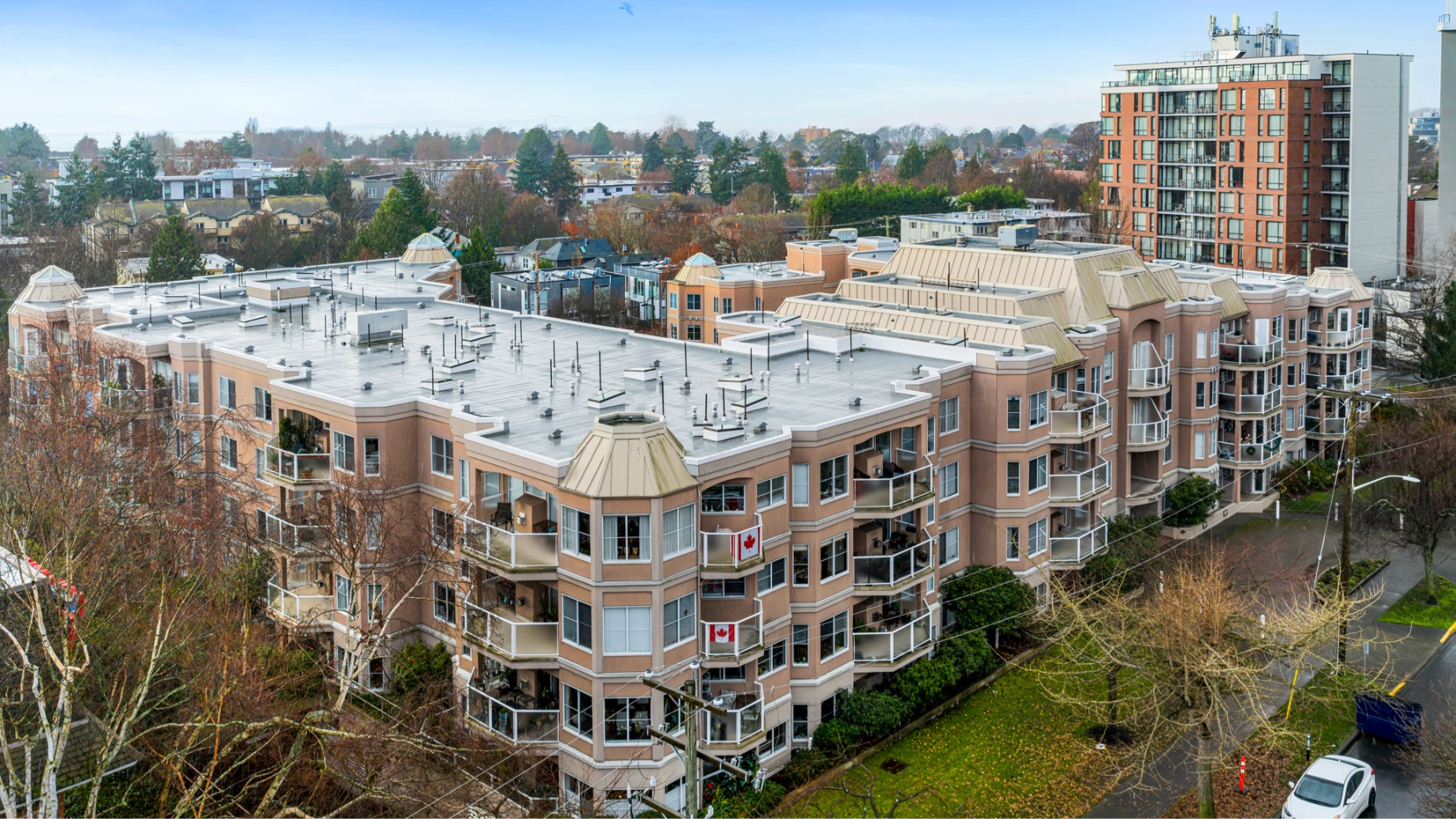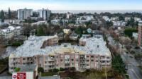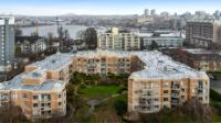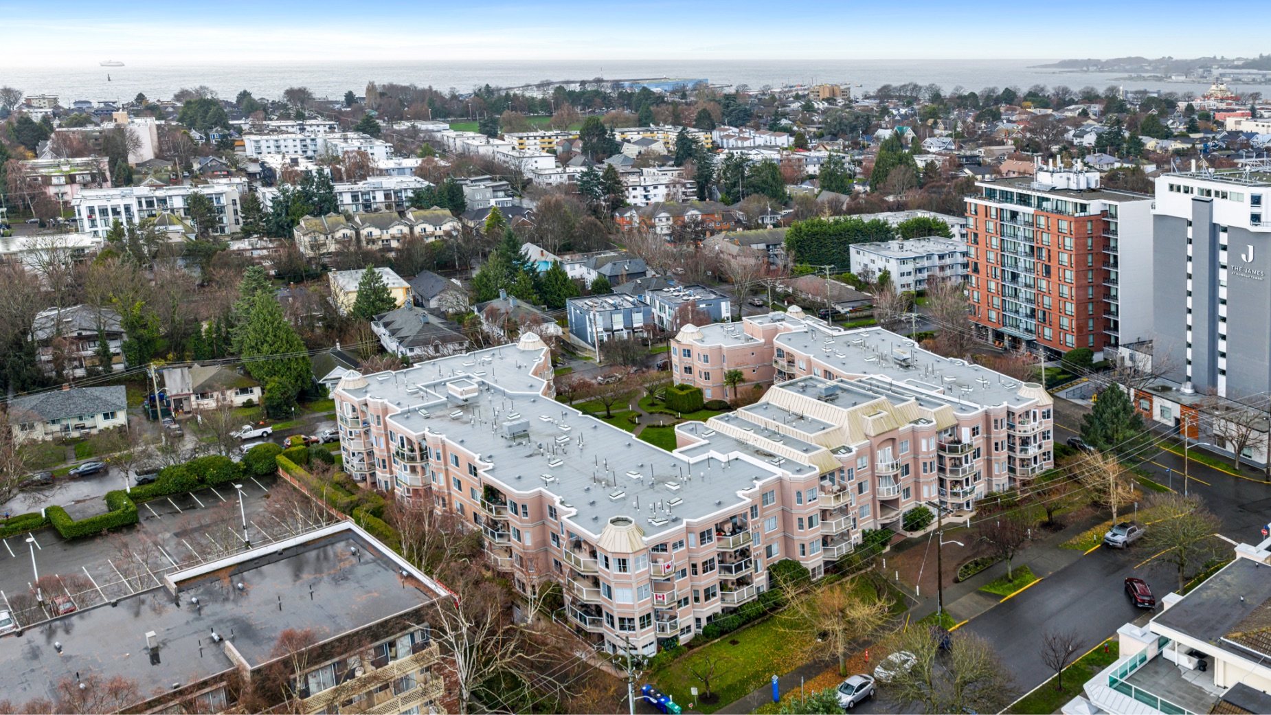 A Fabulous 1 Bedroom plus Den, 1.5 bath Condo with Garden Views and southerly sunny exposure - James Bay living at its best. This attractive condo faces the quiet side of complex and boasts a spacious, open floor plan with good size kitchen overlooking dining area viewing the wonderful mature flowering garden. The den offers great additional flexible space for a home office, or an overnight guest. The living area has a gas fireplace and has access to a large private balcony for rest or relaxation. The primary suite with walk in closet and ensuite offers opportunity for king size bed and lounge chairs for a reading nook. Step out your front door and stroll vibrant James Bay community just steps away from beautiful inner harbour/marina, restaurants, popular Fisherman's Wharf and downtown shopping. This home includes in-suite laundry, storage locker and U/G parking. Bonus - reasonable strata fee includes gas and hot water. No age limit, 1 dog or cat allowed and rentals. Proactive strata.