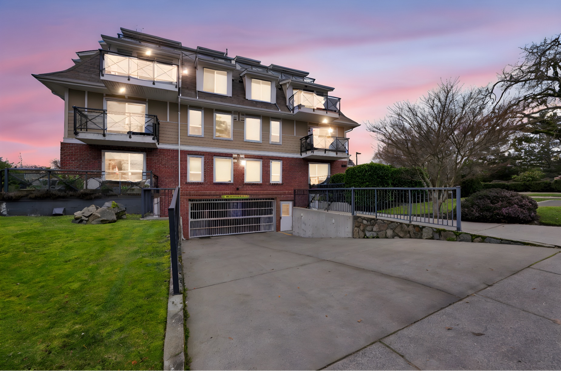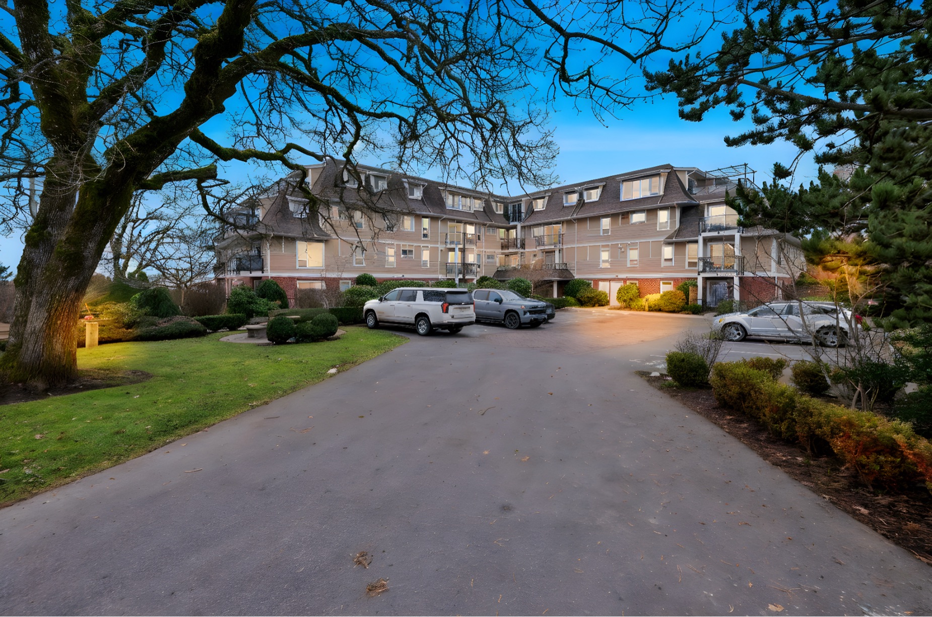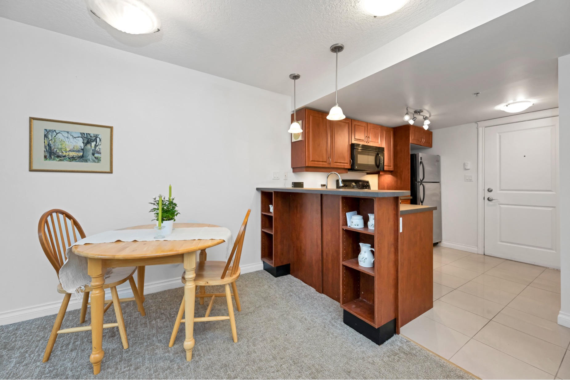 Nothing to do but move in! You will appreciate the open floor plan of this lovely bright home and enjoy the sunrises from the East facing balcony. Features include: Kitchen with stainless steel appliances (stove, fridge, dishwasher, built-in Microwave) double sink; Living Room area with electric fireplace; Dining area with access to balcony where you can relax and BBQ; Primary bedroom with a large walk-in closet; plus a 4 piece Bath and in unit Laundry. Built in 2008, this 55+ building includes a secured entrance, a common room where you can enjoy various activities or just grab a book and relax, separate locker (on the same floor), visitors parking and underground secured parking for one vehicle. The location is excellent - a short stroll to the Royal Oak Shopping Centre plus Restaurants all nearby. Whether you are an empty nester or retiree, you will be impressed by the condition, location and price of this one bedroom home. Call your Realtor today for a private viewing.
