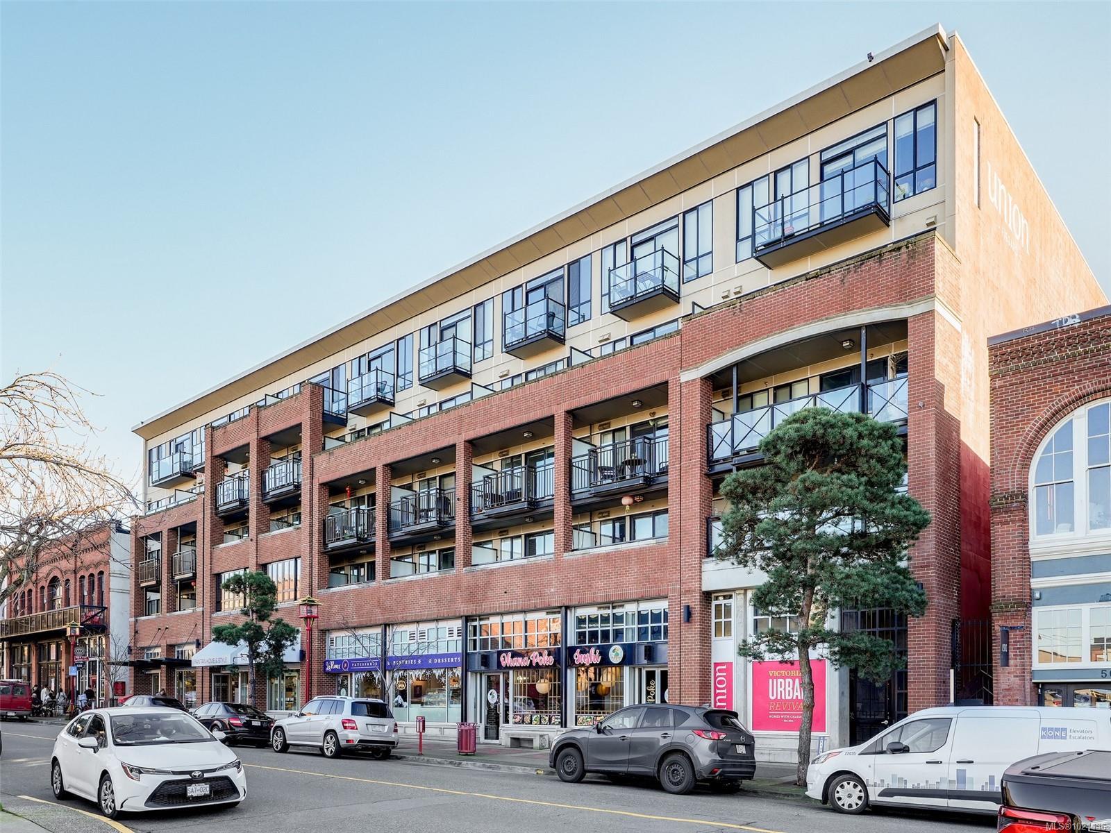 Located in the vibrant heart of Chinatown, this exquisite one-bedroom suite in the esteemed UNION building offers a sophisticated retreat with captivating northwest views. Boasting 601 square feet of modern living space, this residence features tasteful owner upgrades including a custom wood wall feature and designer shelving unit and recently re-painted making this home MOVE-IN READY! The well-appointed kitchen showcases stainless steel appliances, newer refrigerator and ample storage, while the sleek bathroom offers porcelain tile and a soaker tub. With inclusion of hot water in the strata fees, secure underground parking, and no pet or rental restrictions, this professionally managed property presents a prime opportunity in the Downtown Victoria condo market. Embrace the pinnacle of urban living in this impeccably maintained sanctuary nestled in a bustling historic locale and be just steps to shopping, pubs, cafes, array of dining, waterfront walkways and active lifestyle options.