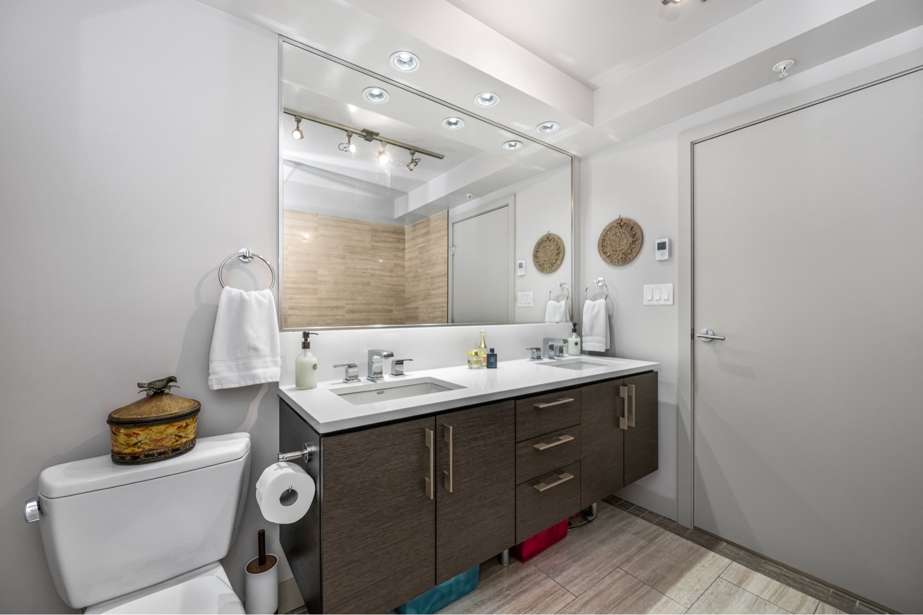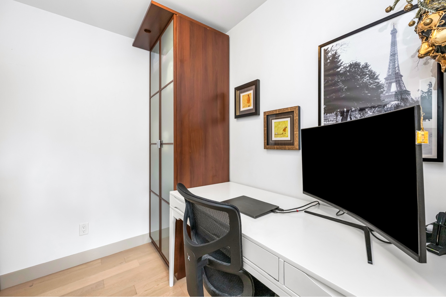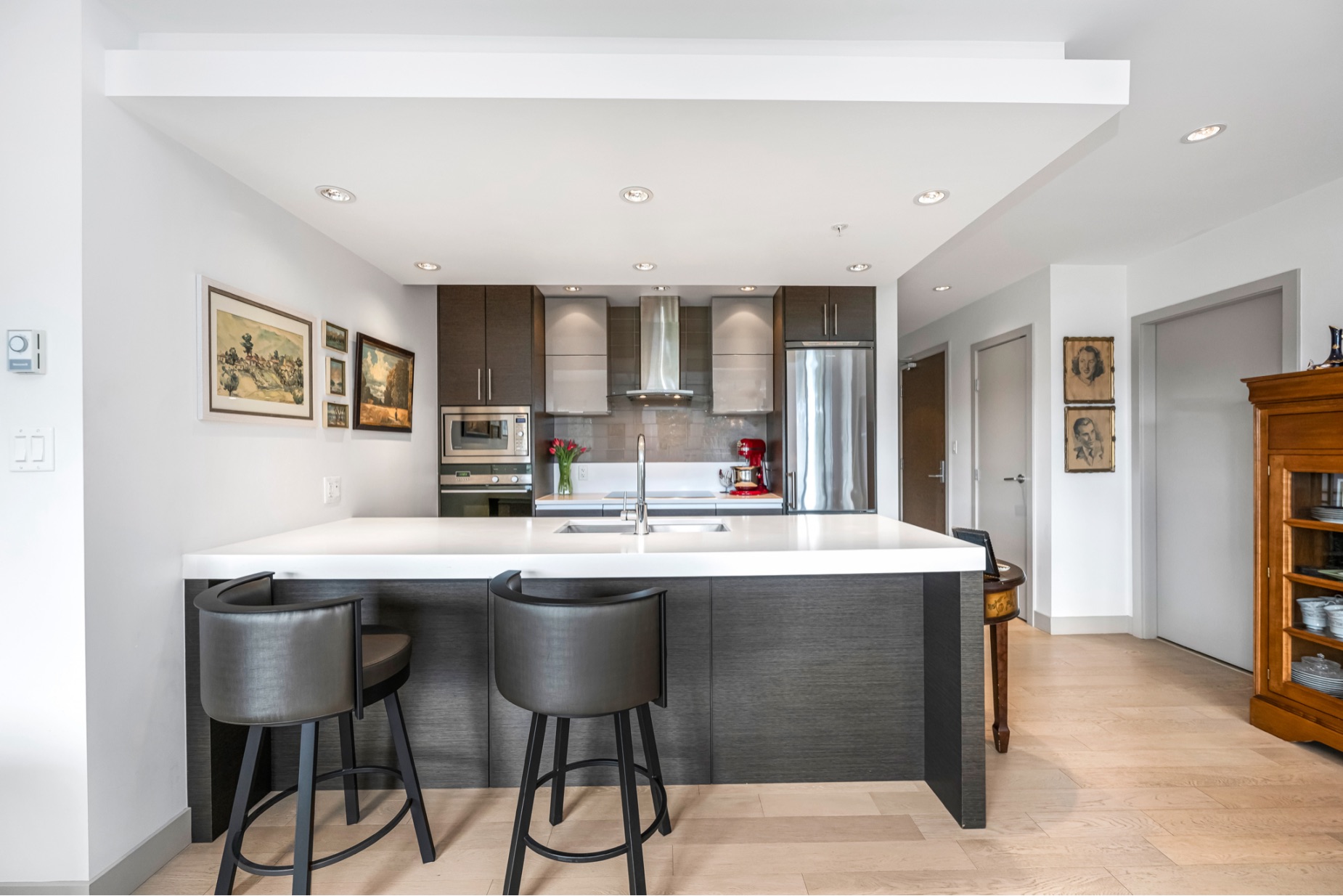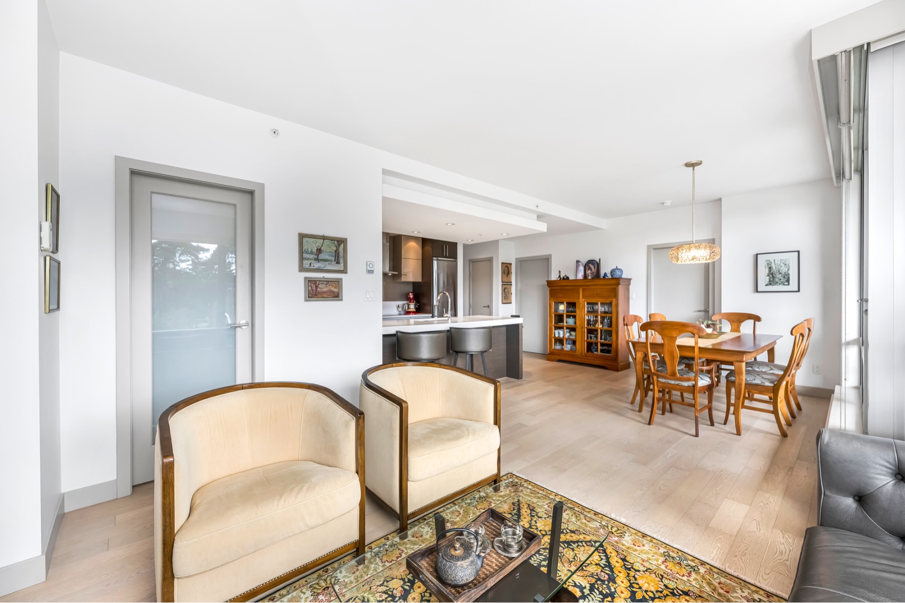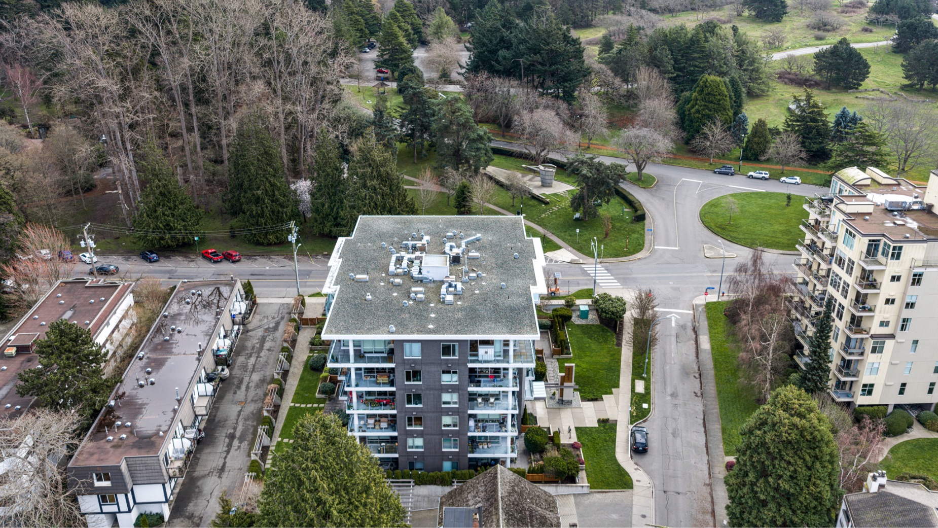 Experience luxurious urban living in this bright, beautifully appointed 4th-floor unit at “Douglas on the Park,” a premier steel-and-concrete building with stunning unobstructed Beacon Hill Park views and steps from the Dallas Rd waterfront. This 860+ sqft residence offers 1 bedroom + spacious den (ideal office or 2nd bedroom) and 1 elegant bath. Features include 9' ceilings, floor-to-ceiling windows, hardwood floors, and a modern fireplace. The chef-inspired kitchen boasts quartz countertops and premium stainless-steel appliances. The generous primary bedroom provides ample closet space, while the spa-like bath offers dual vanities, a soaker tub, glass shower, and heated floors. Includes secure underground parking, large storage locker, bike storage, EV charging, and pet-friendly living. Prime James Bay location near Cook St Village and downtown—walkable city living surrounded by nature, oceanfront paths, and vibrant community amenities.