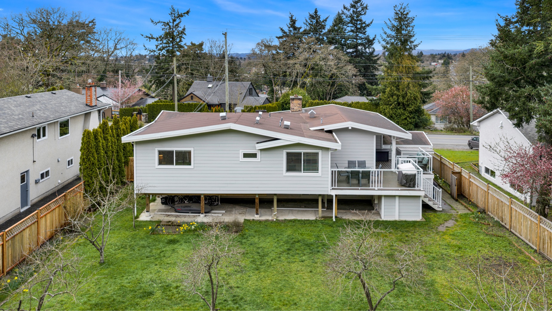 Exquisitely updated single-family home in a highly sought-after neighbourhood, offering over 2,600 sq ft of living space on two levels on a 10,000 sq ft lot. Ideally located minutes from UVIC, St. Michaels University School, Camosun College, Hillside Mall, shopping, and convenient bus routes, perfect for families, students, or investors. The upper-level features 3 bedrooms and 2 full bathrooms, including a spacious primary suite with private ensuite. The main floor also offers a bright home office, formal living and dining areas, and a beautifully renovated kitchen opening onto two expansive decks for seamless indoor-outdoor living and entertaining. The lower level includes a self-contained suite with separate entry, 2 bedrooms, 2 bathrooms, full kitchen, and comfortable living/dining area. Shared laundry is easily accessible. Set on a large, fully fenced lot, the property is a gardener’s dream with a garden shed and spacious greenhouse—offering exceptional value in a vibrant, walkable community.