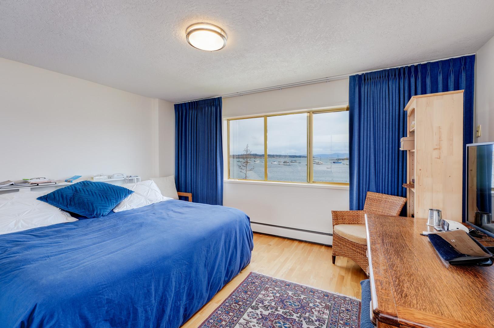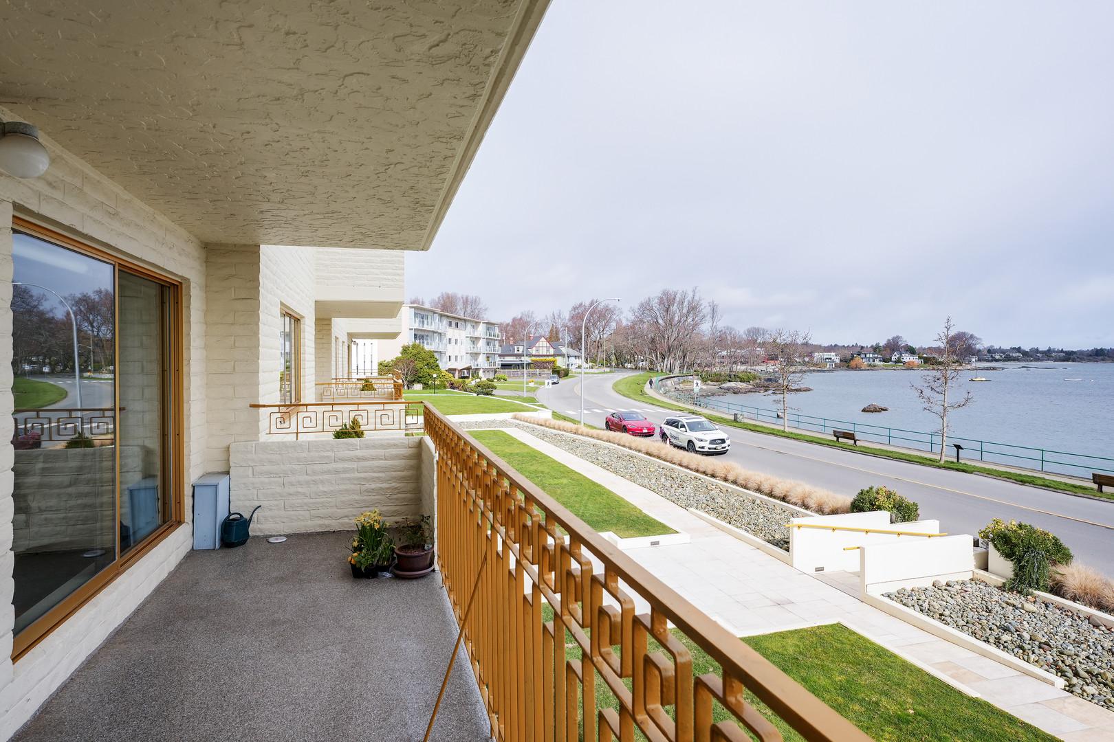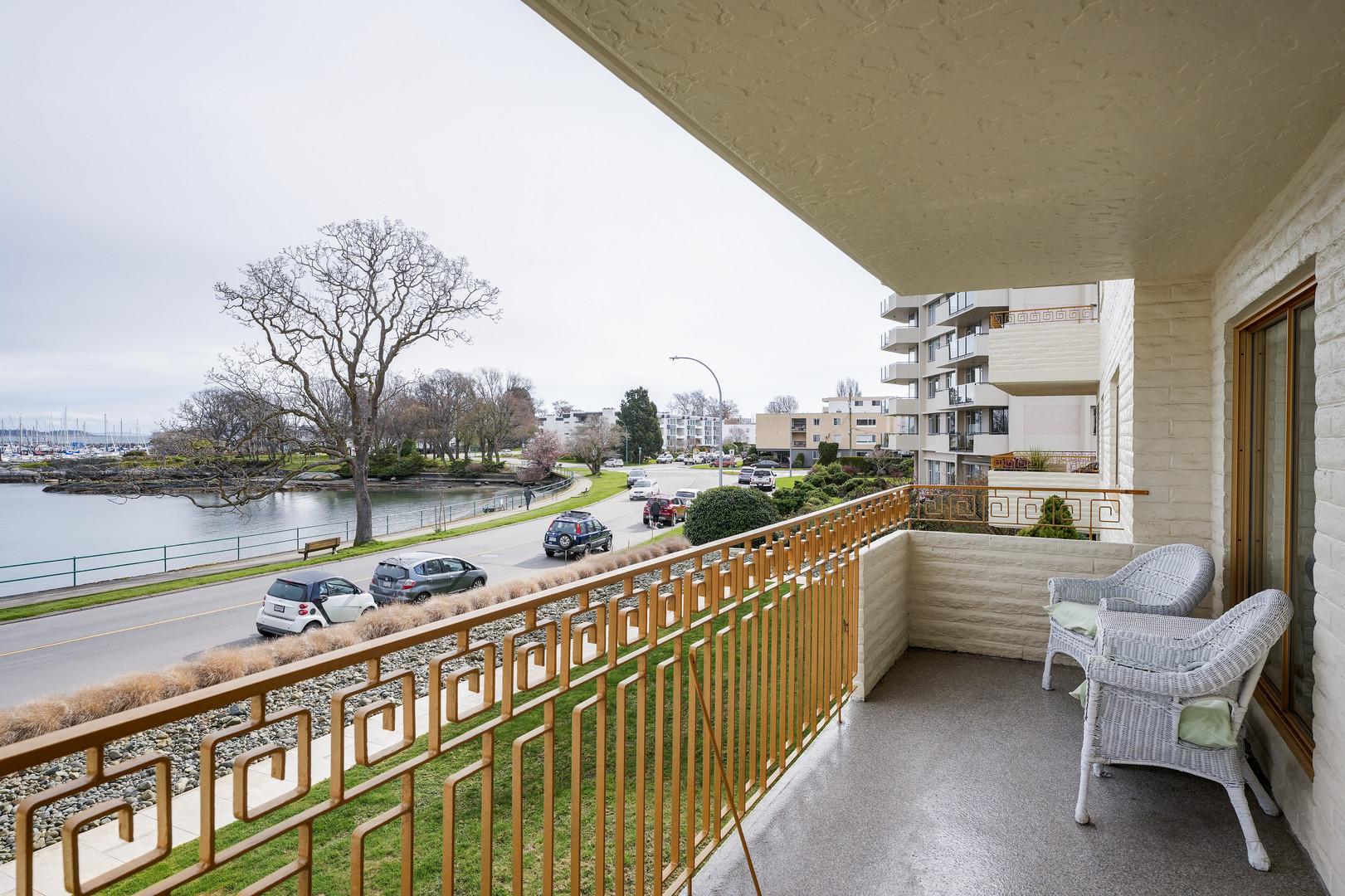 Endless 180 DEGREE OCEAN AND MOUNTAIN VIEWS are featured in this wonderful 1 bedroom and den or 2 bedroom, spacious condo suite, located in the highly desirable, well maintained building at 1440 Beach Drive in the very heart of South Oak Bay. Positioned just steps from the Oak Bay Marina, Windsor Park, Victoria Golf Course, Oak Bay Village and pleasant walking routes, this suite checks all the boxes when it comes to convenience and living alongside the oceanfront. This freehold strata building, built in concrete and steel in 1972, continues to stand the test of time, has been tastefully updated over the years and is managed with pride. Features include insuite laundry and storage, underground secure parking, a large living room and primary bedroom, wood floors, a large balcony, separate storage locker, secure entry, etc. Enjoy VIEWS OF THE OCEAN AND MOUNTAINS, BIRDS AND SEALIFE, BOATS PASSING BY….A most sought after home, perfect for those seeking A MAGICAL LIFESTYLE IN OAK BAY.